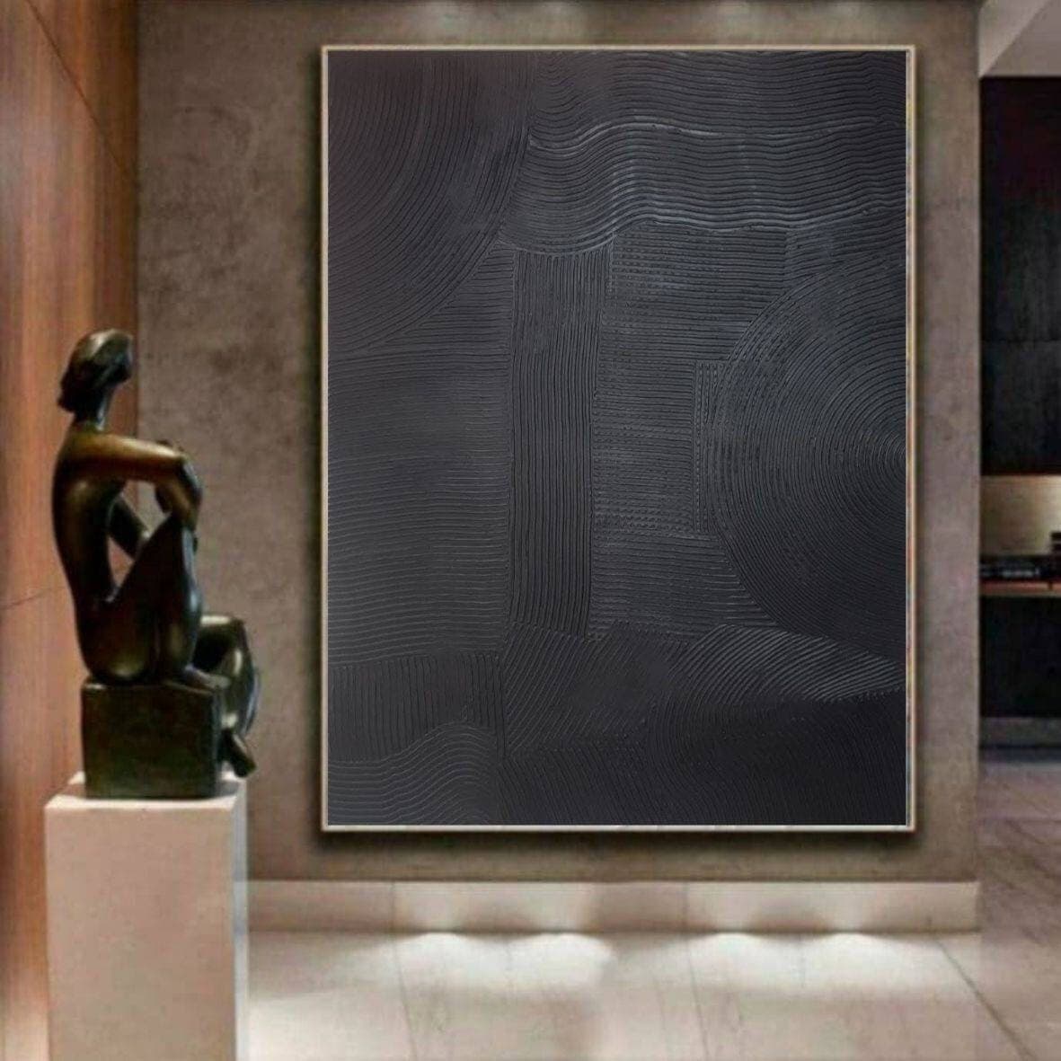 Extra Large Black Textured Wall Art Abstract 3D Plaster Painting Handmade Canvas