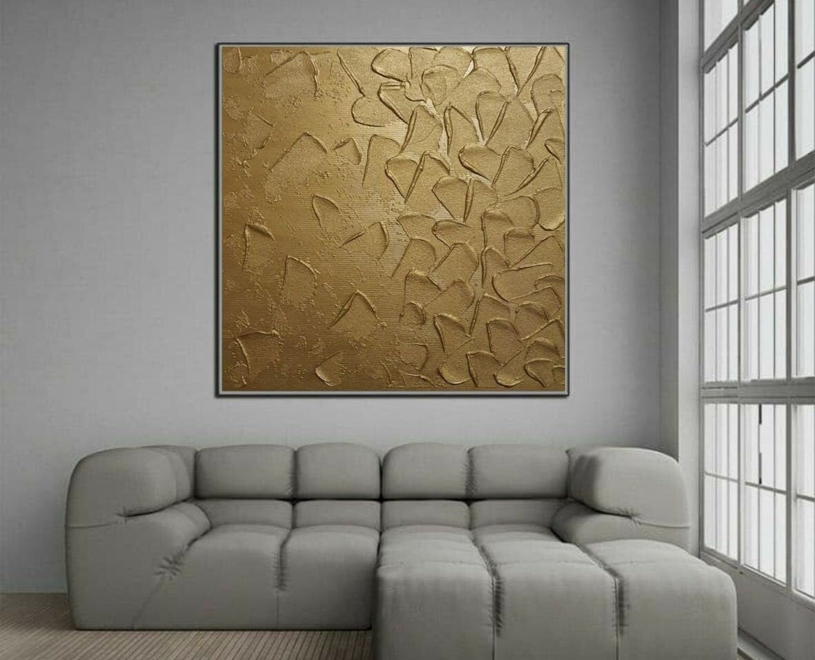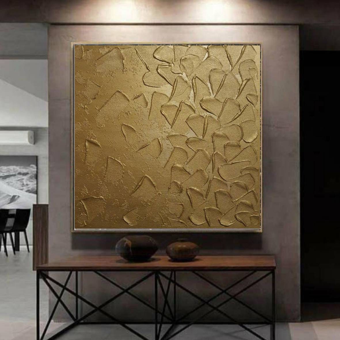 Extra Large Bronze Painting 3d Textured Oversize Abstract Wall Art Hallway Modern 3d plaster large strokes gold Monochrome Wall Art Decor