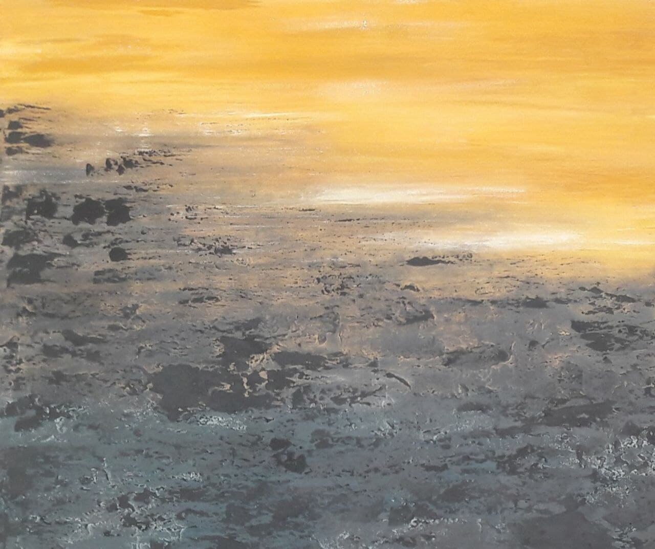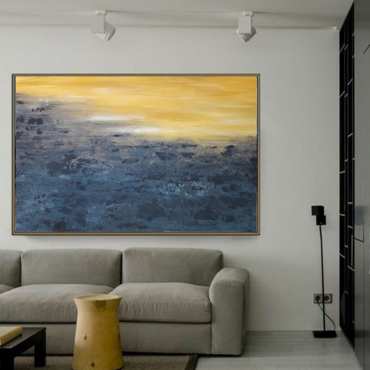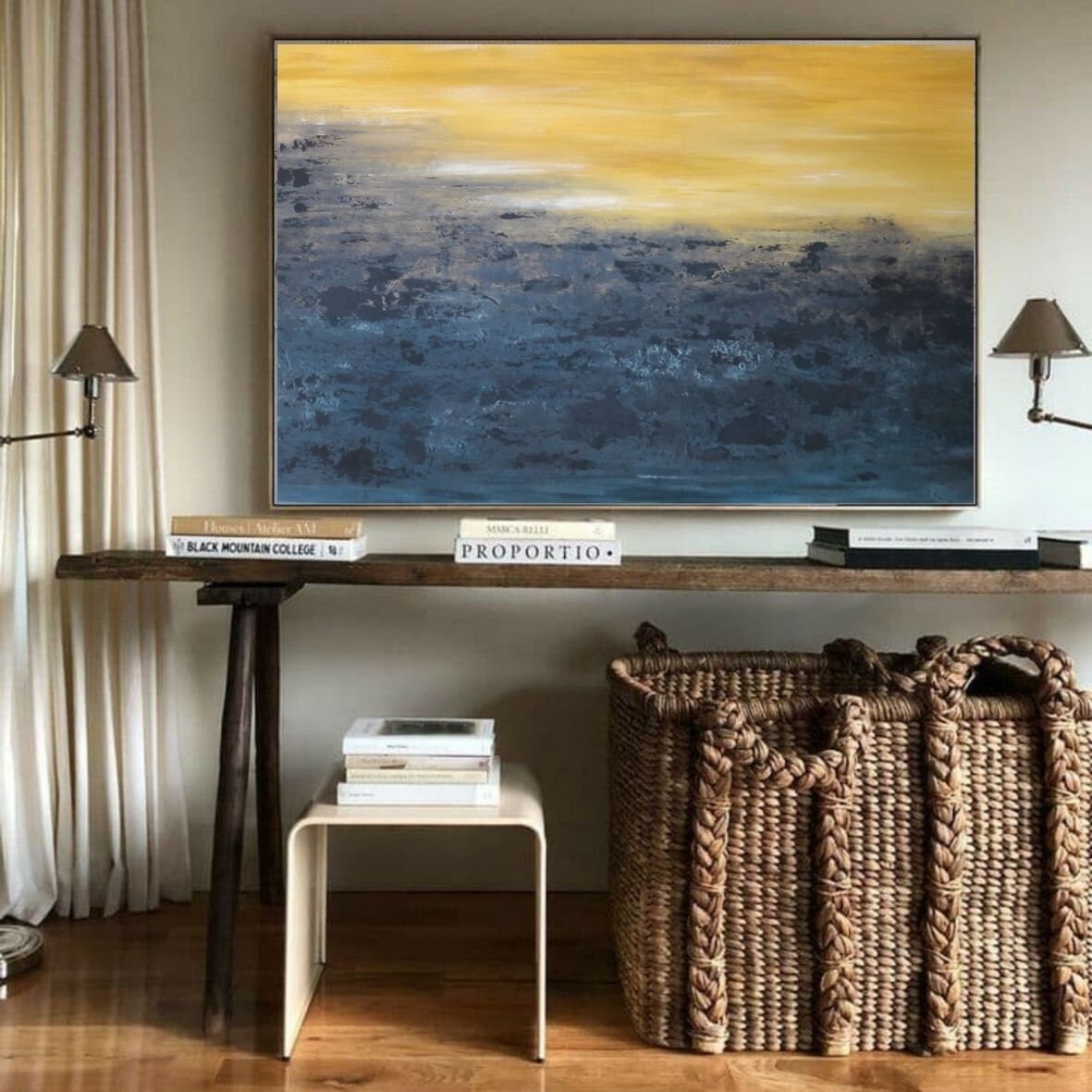 Extra Large Abstract Seascape Painting: Yellow & Black Textured Wall Art