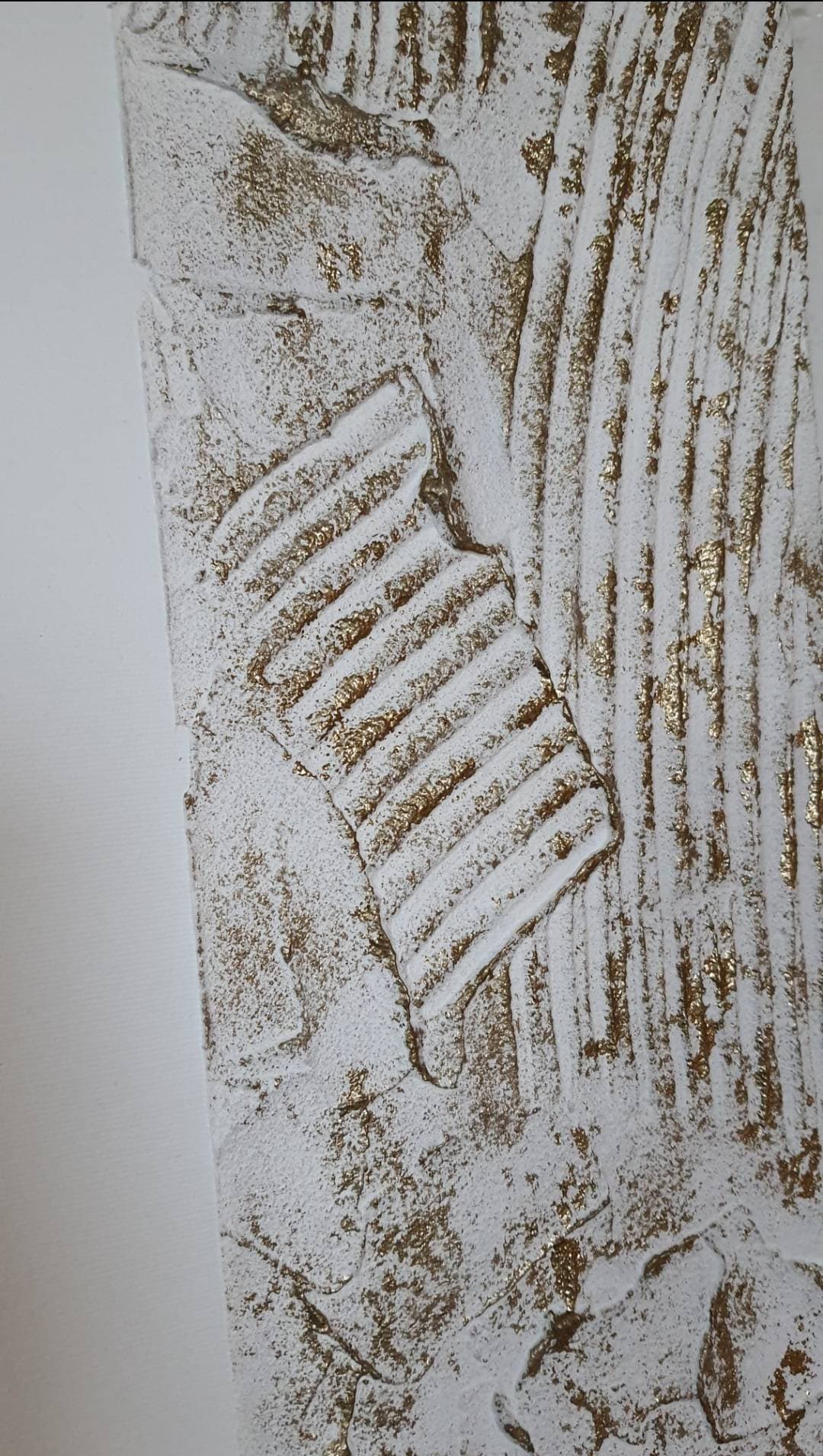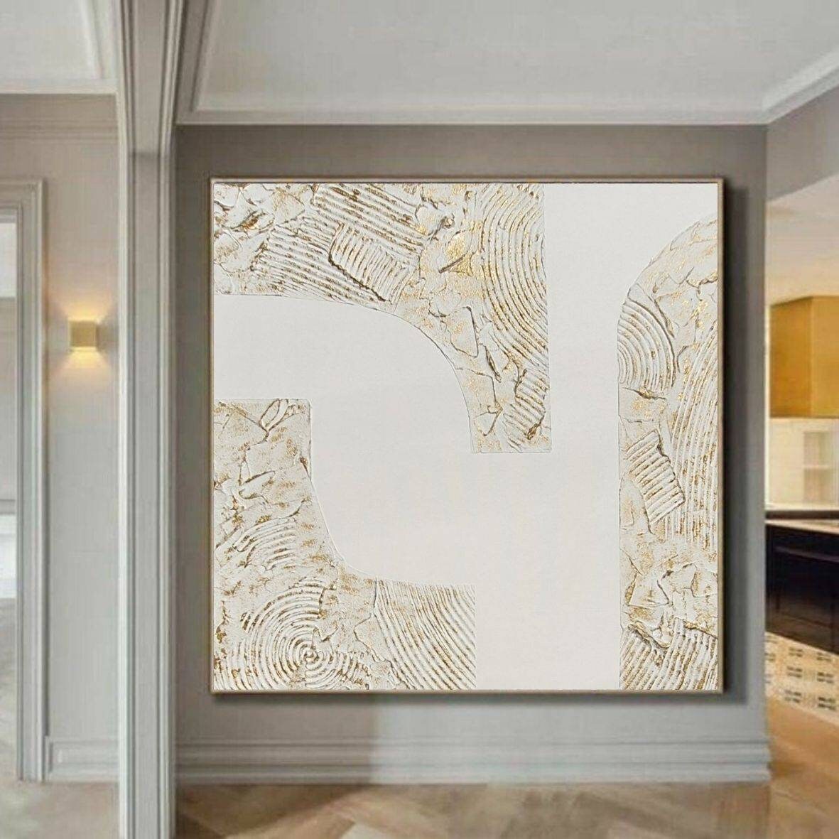 Oversize White & Gold Abstract Painting: 3D Texture, Modern Minimalist Wall Art