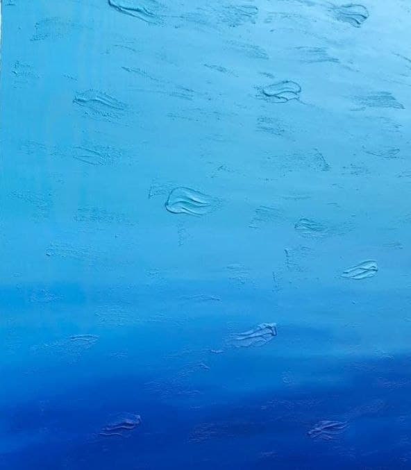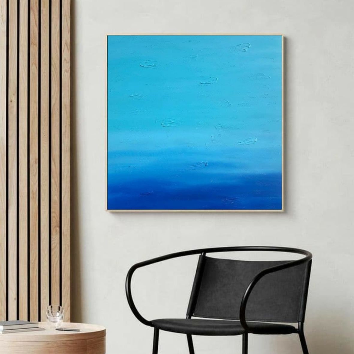 Large Blue Abstract Seascape Painting: Textured Canvas Wall Art