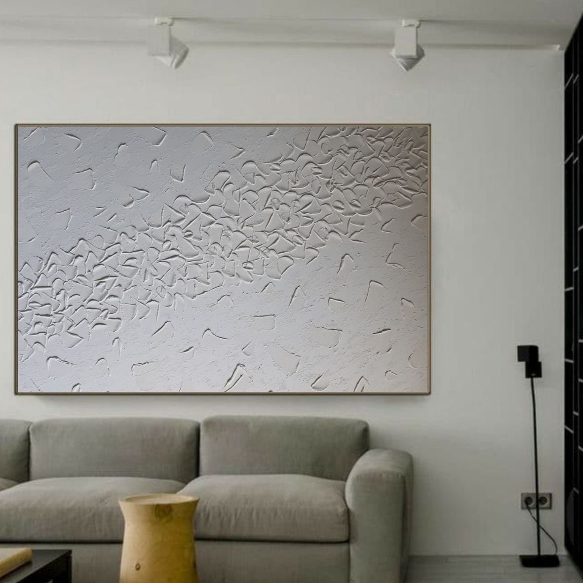 Large White Textured Wall Art Monochrome Abstract Painting 3D Plaster Modern Canvas Home Decor
