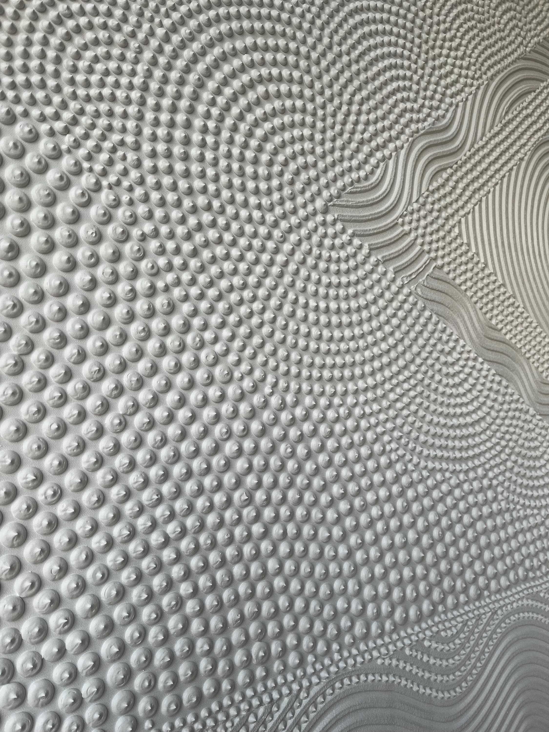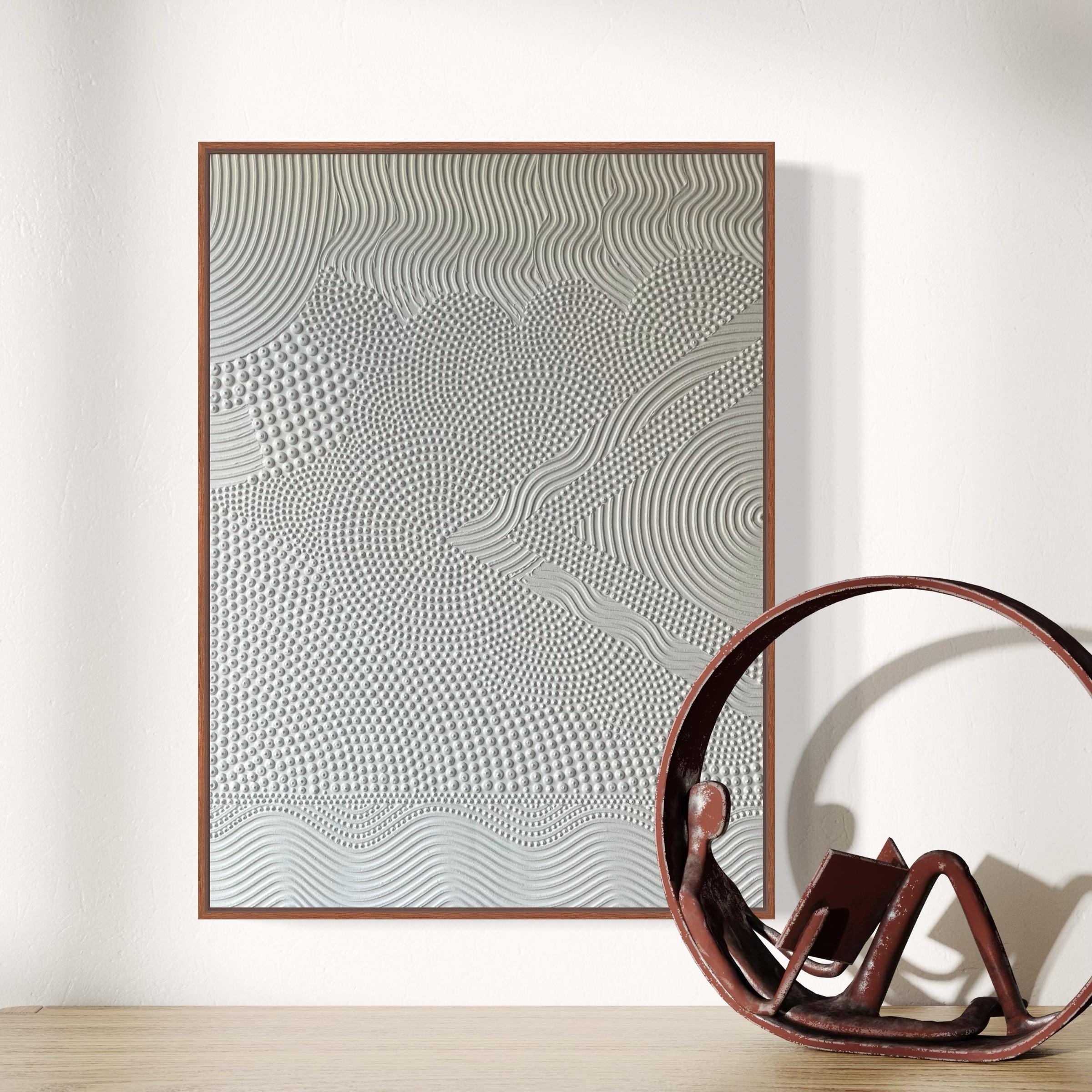 Transform your space with this sculptural, neutral 3D textured wall art, created in calming organic waves and dotted geometric rhythm. Each raised dot and curved relief line is made fully by hand — no prints, no molds — resulting in a tactile, sculptural surface that feels both architectural and soft.