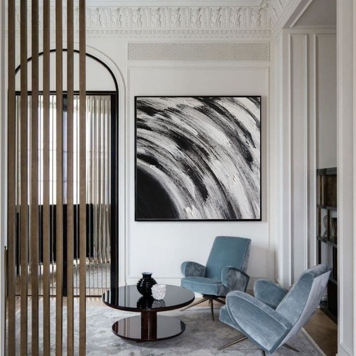 The dynamic contrast of black and white, combined with expressive circular movement, brings balance, depth, and sophistication to any modern interior.