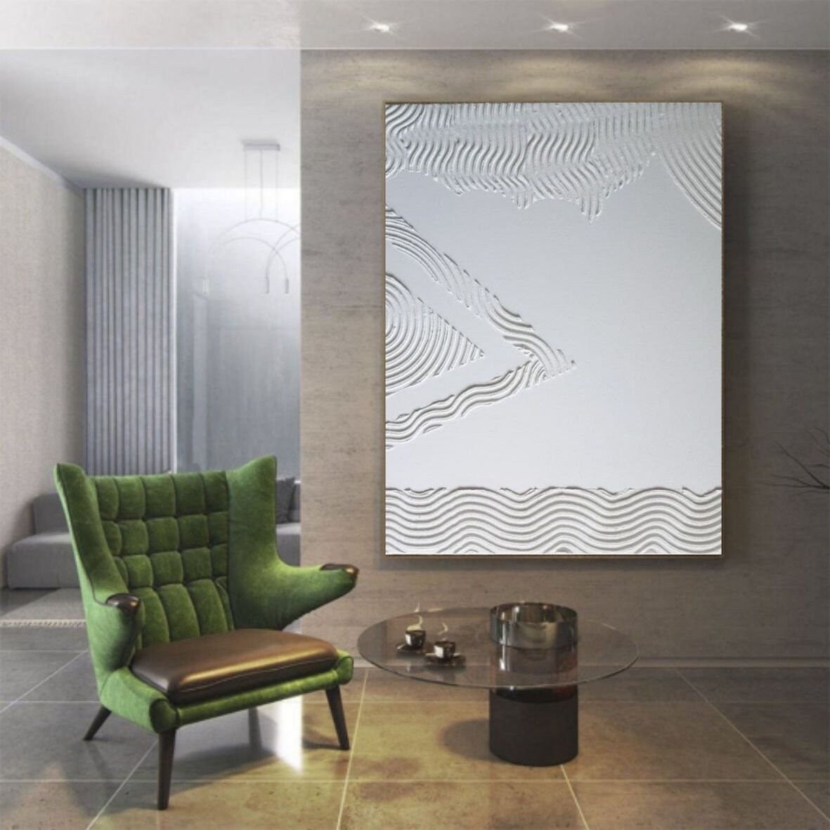 Extra Large White Textured Wall Art Abstract 3d Painting Handmade Plaster Canvas Neutral Home Decor