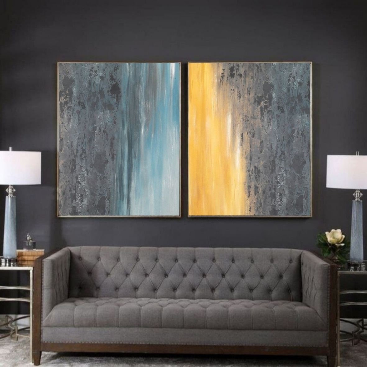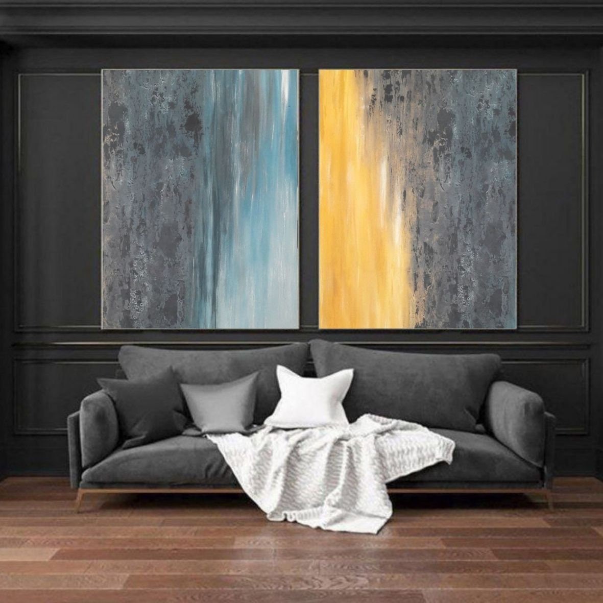 Large Abstract Canvas Painting Set: Blue & Yellow Modern Wall Art