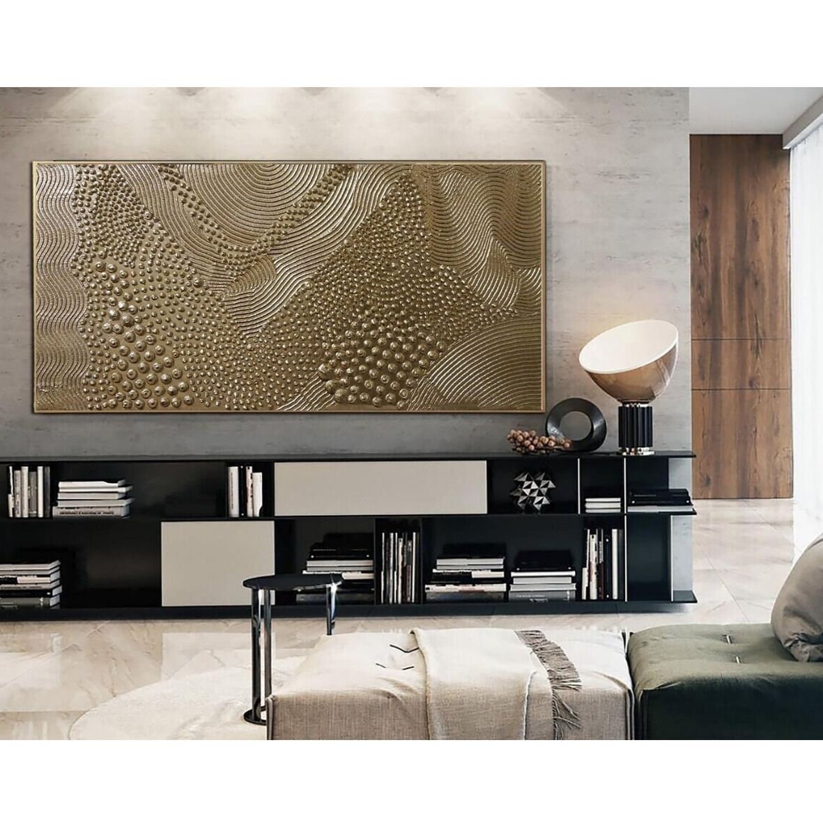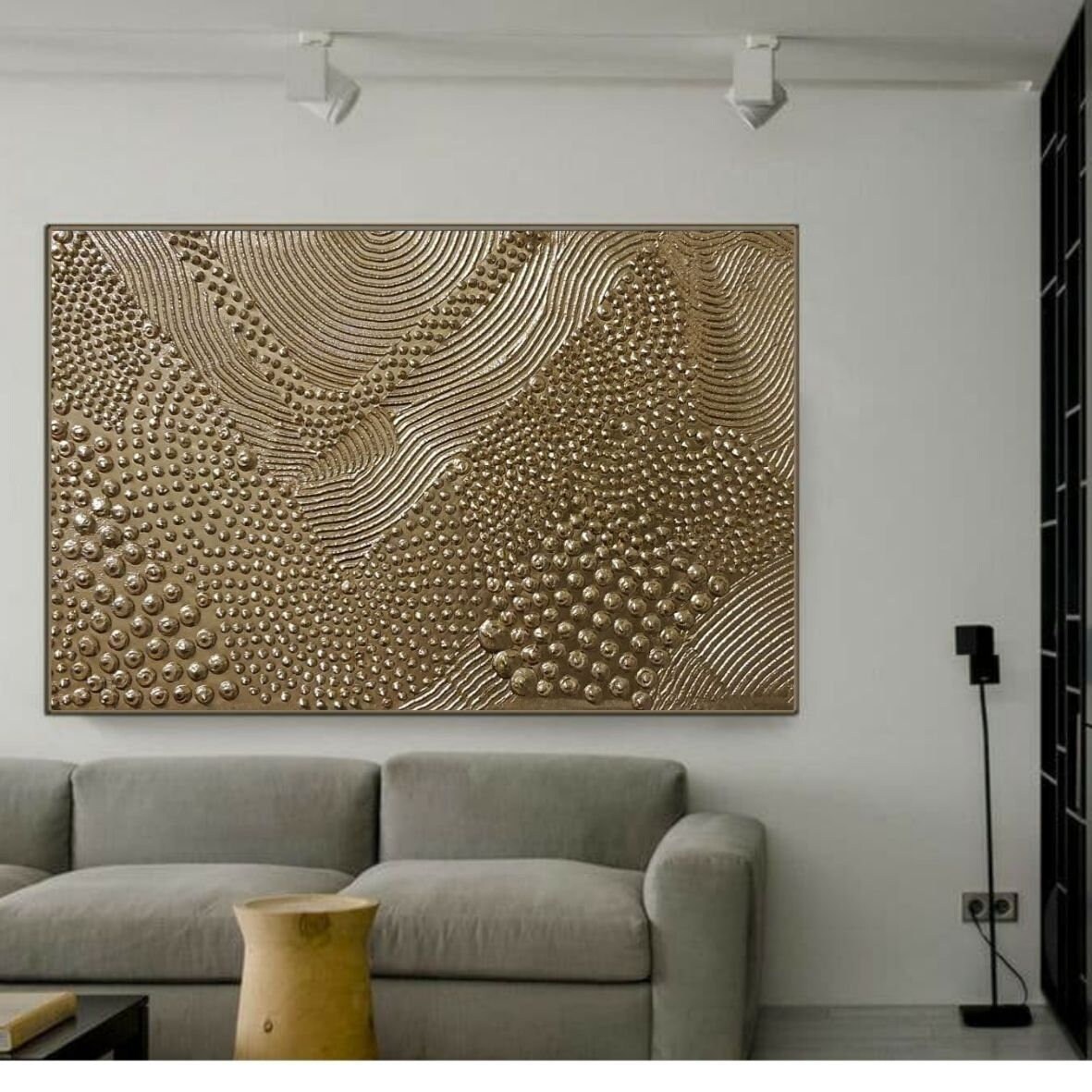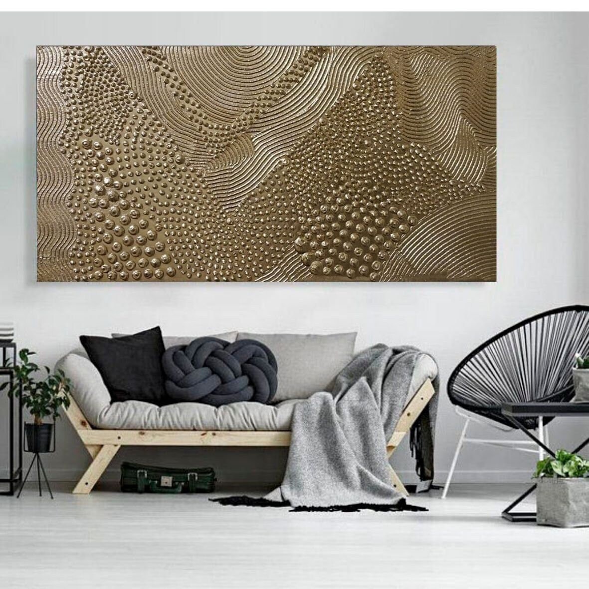 Gold 3D Texture Painting: Large Abstract Metallic Canvas Art