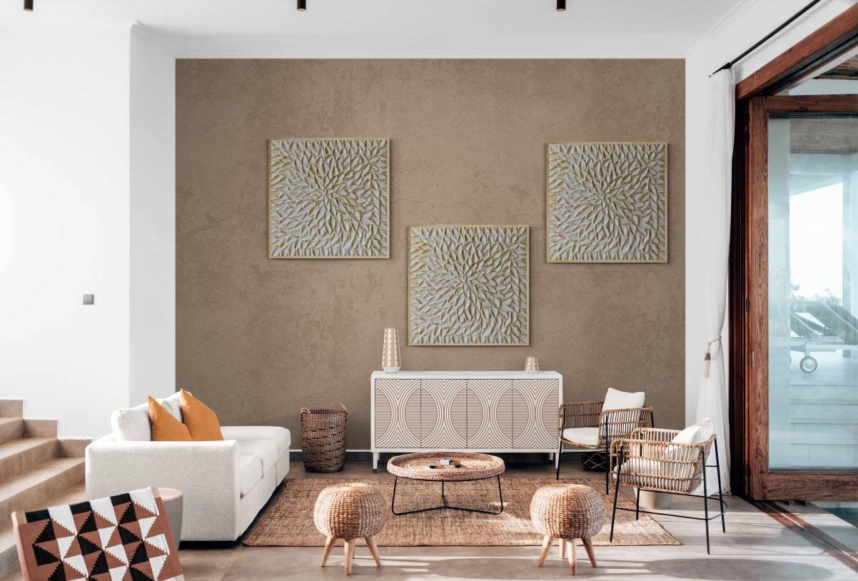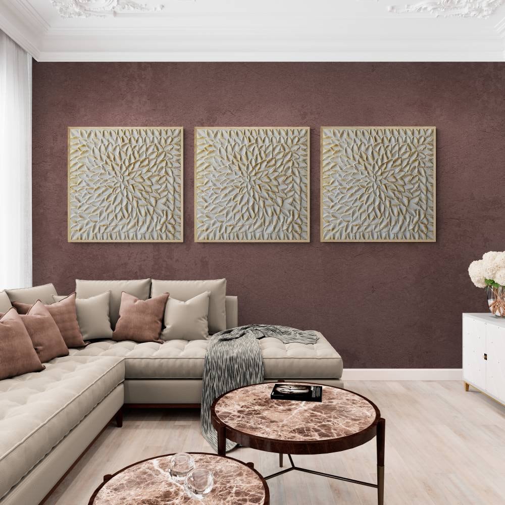 White Gold Abstract Wall Art Set: Textured Canvas Panel Decor