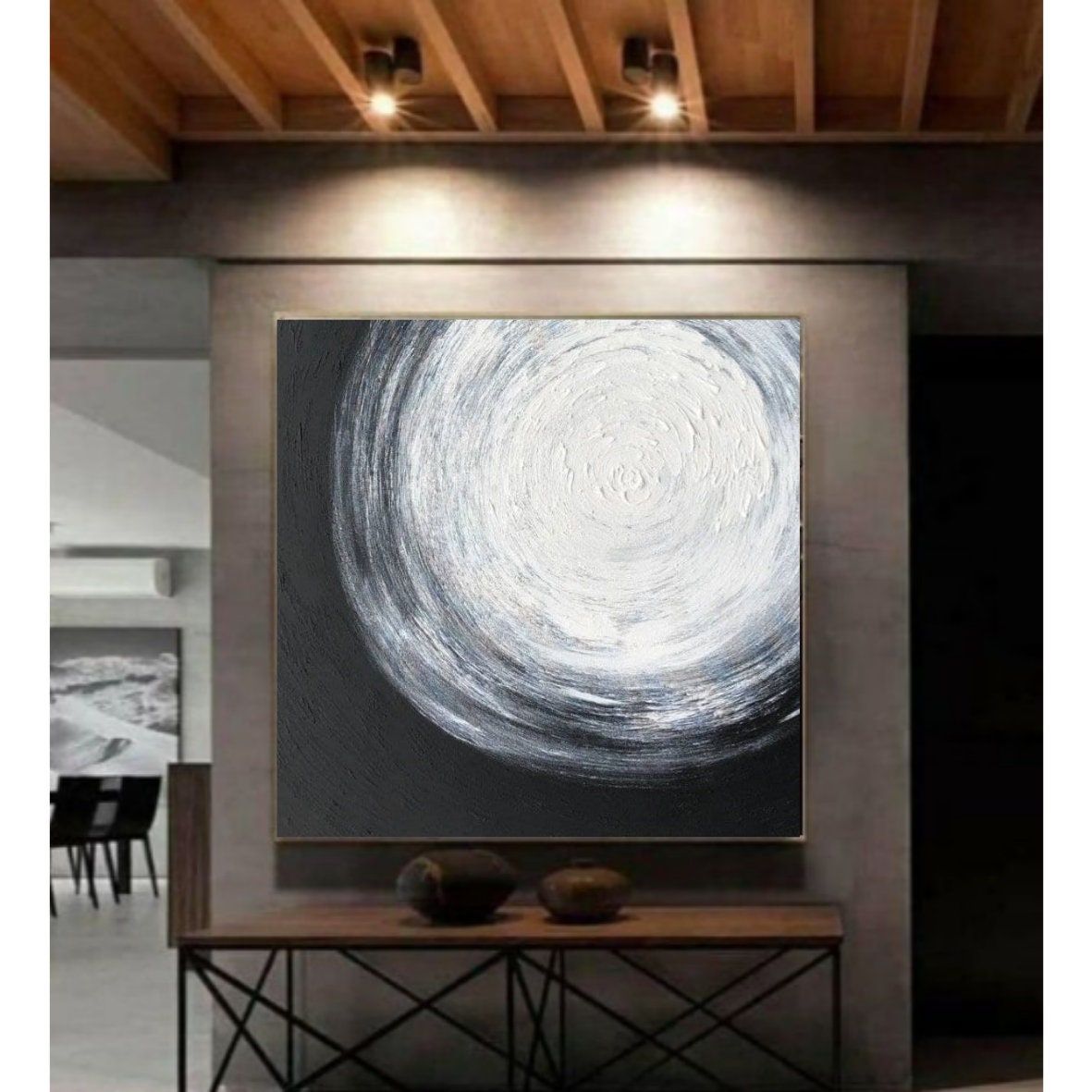 The dynamic contrast of black and white, combined with expressive circular movement, brings balance, depth, and sophistication to any modern interior.