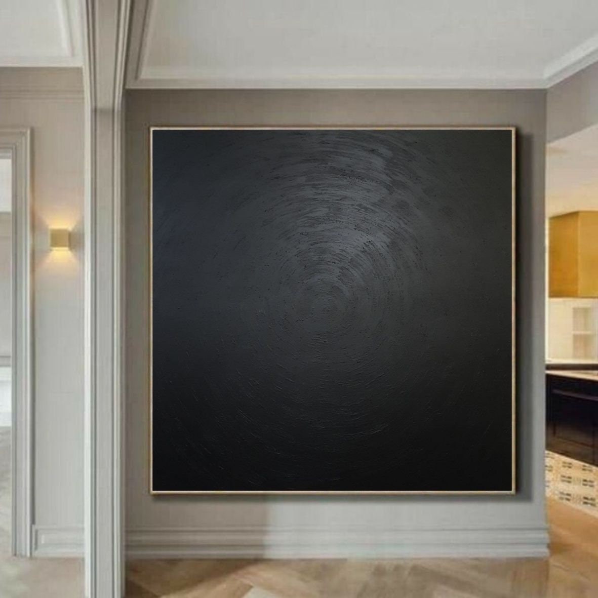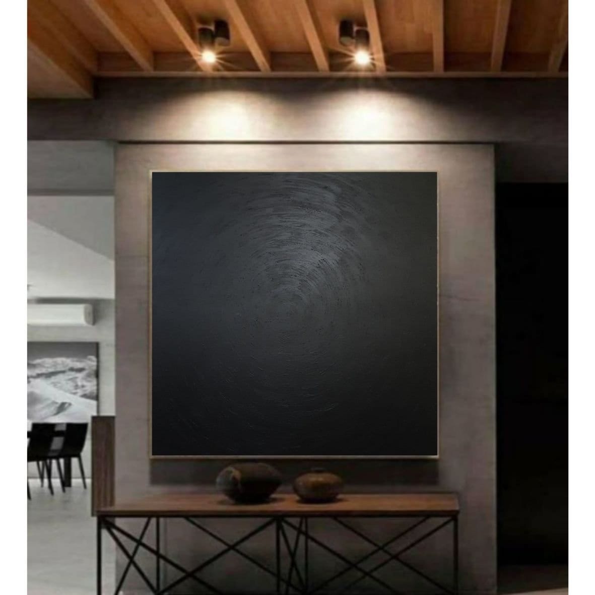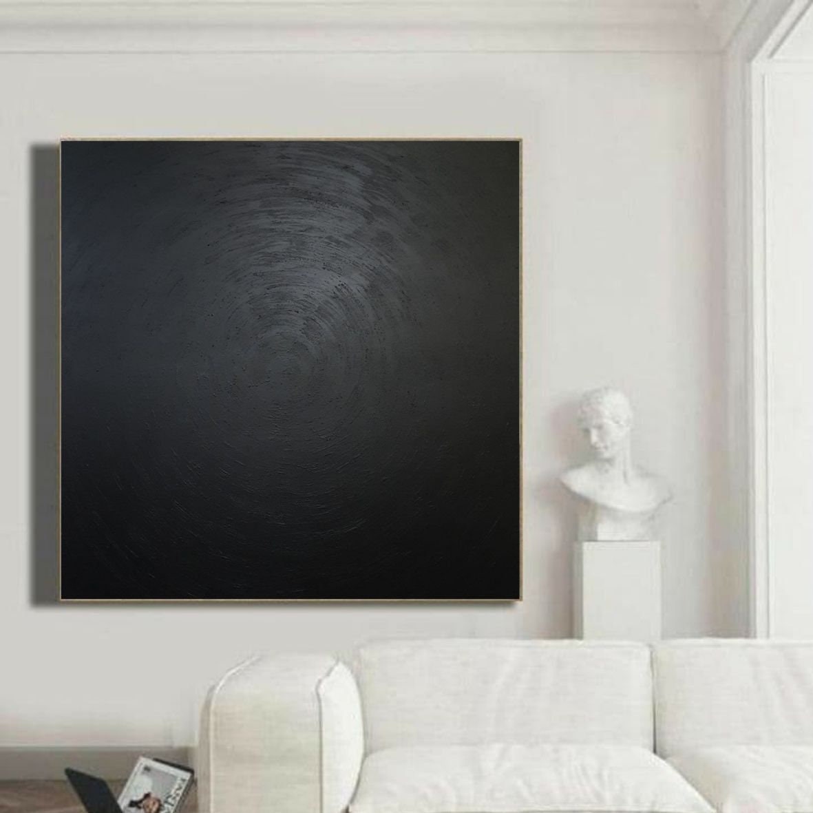 Large Black Square Painting: Monochrome Abstract Canvas Art