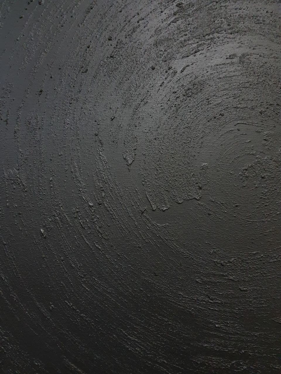 This large black textured abstract painting is a bold, sculptural statement piece, entirely handmade using layered texture techniques to create a deep 3D relief surface.