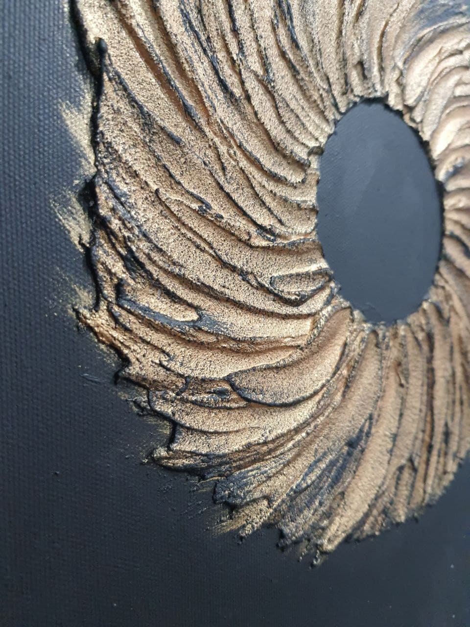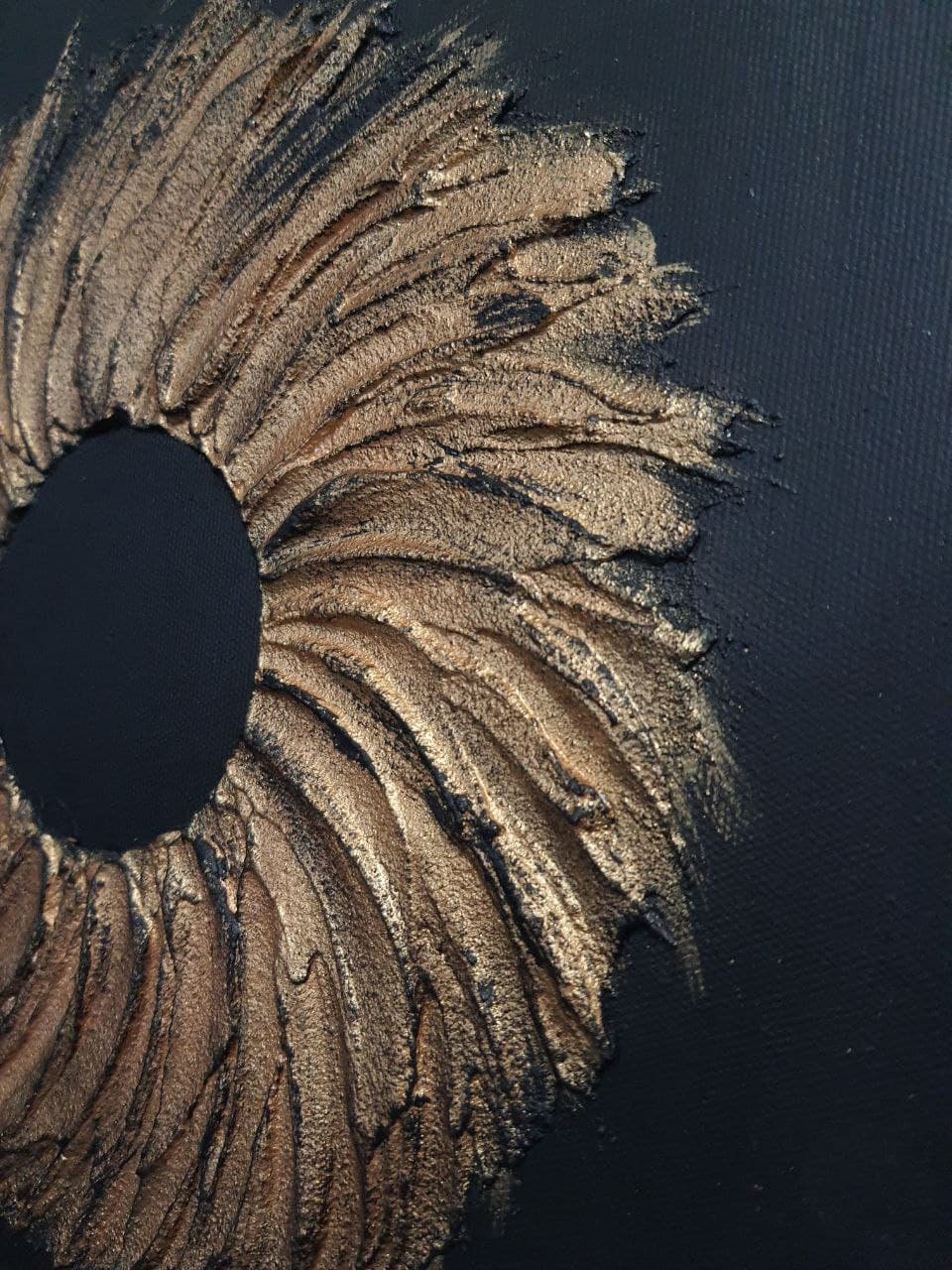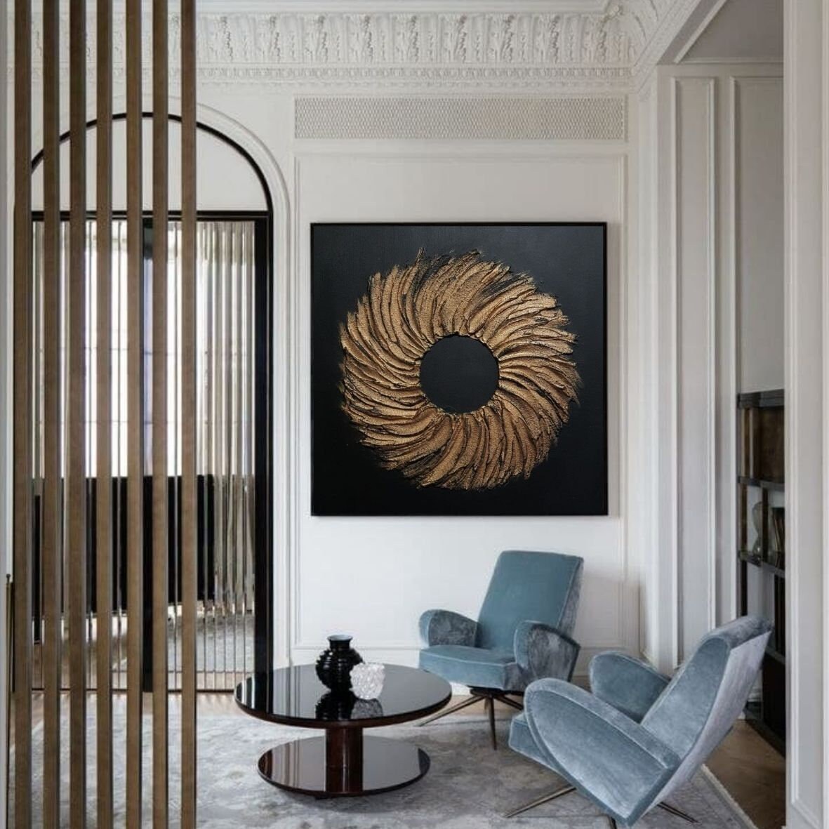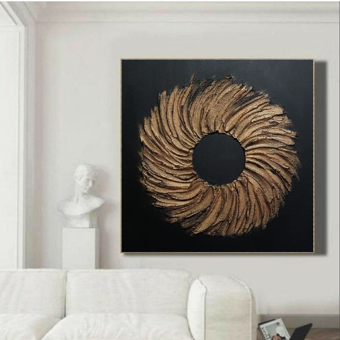 Large Modern Black Canvas Wall Art Gold 3D Texture Wreath Painting