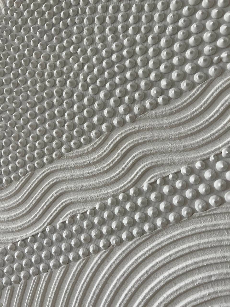 Transform your space with this hand-sculpted, neutral 3D textured wall art, created in calming organic waves and dotted geometric rhythm. Each raised dot and curved relief line is made fully by hand — no prints, no molds — resulting in a tactile, sculptural surface that feels both architectural and soft.