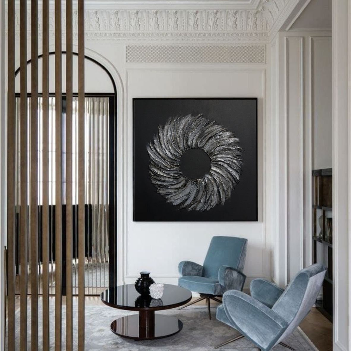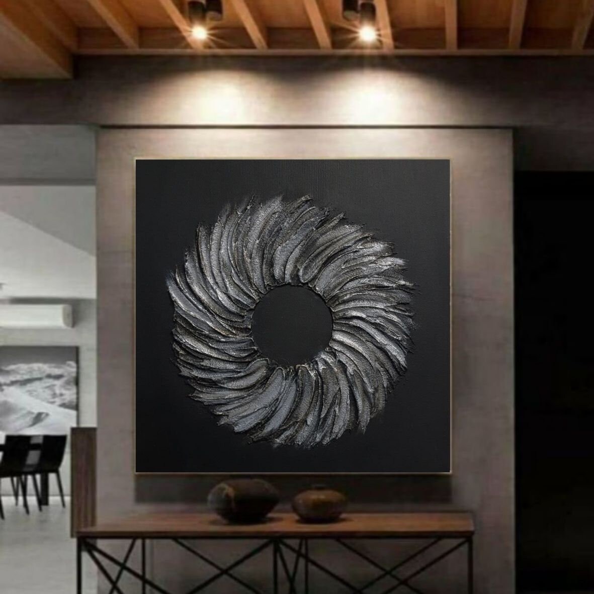 Large Painting Vintage Silver Texture Wreath Wall Decor Hallway Extra Large Silver Modern Texture Canvas Original