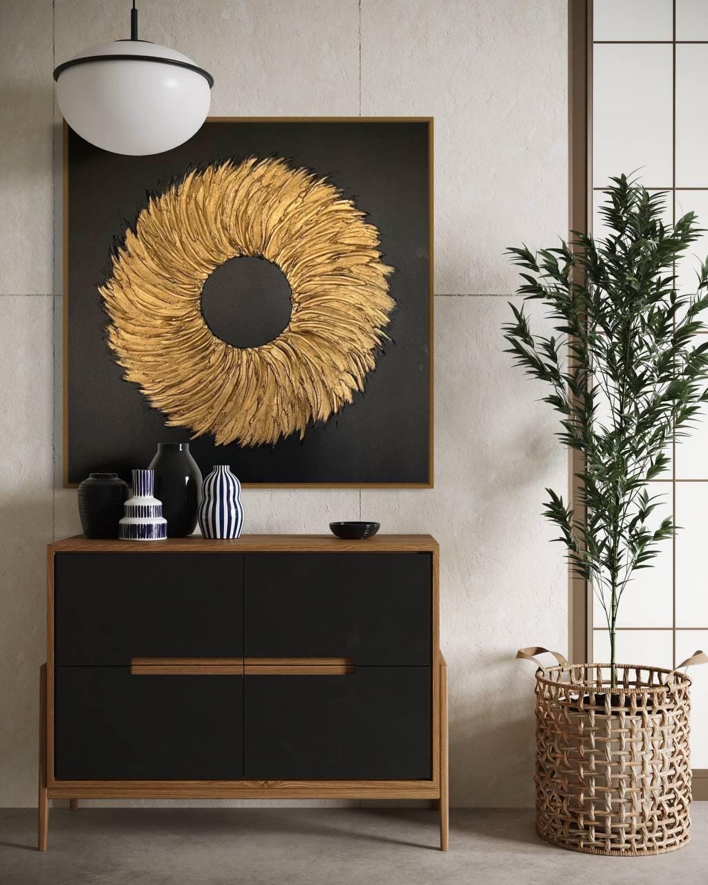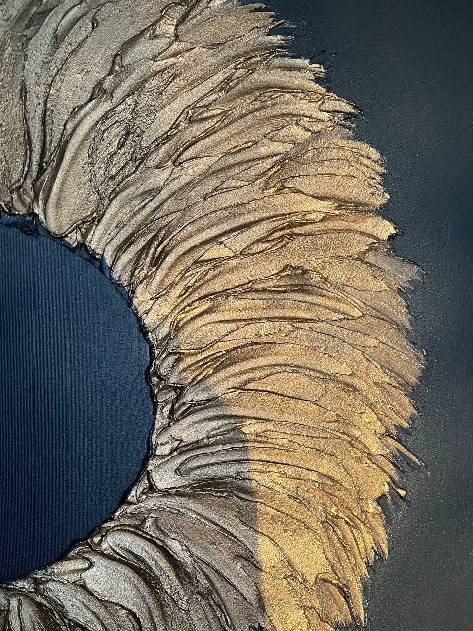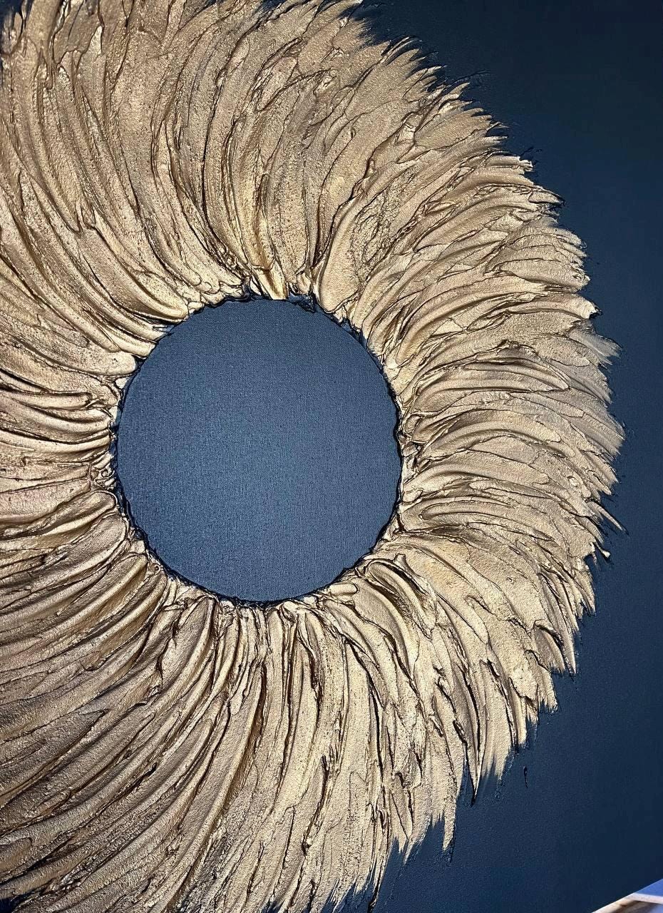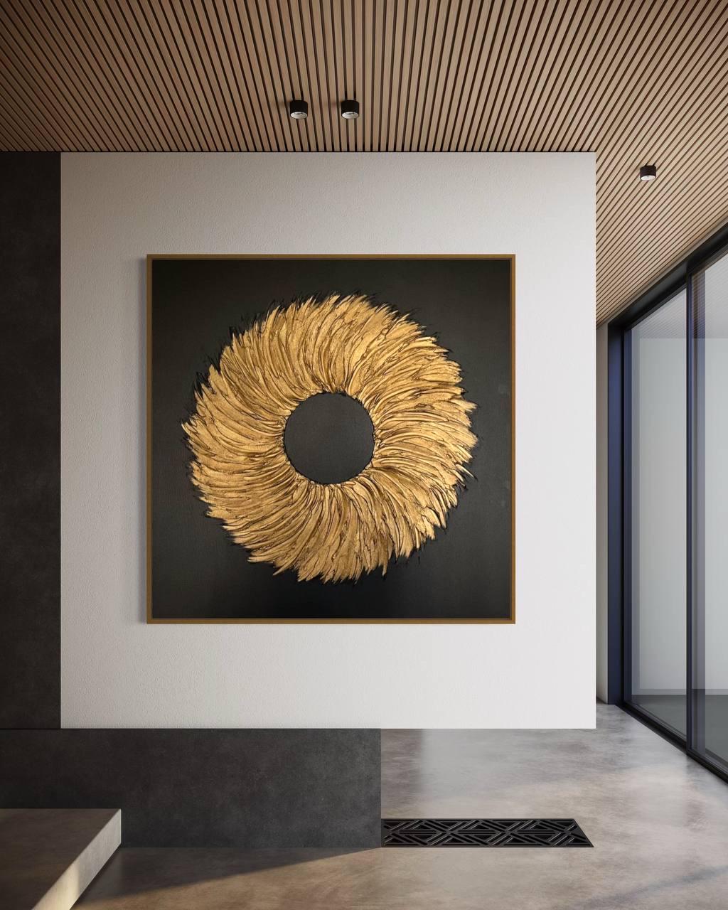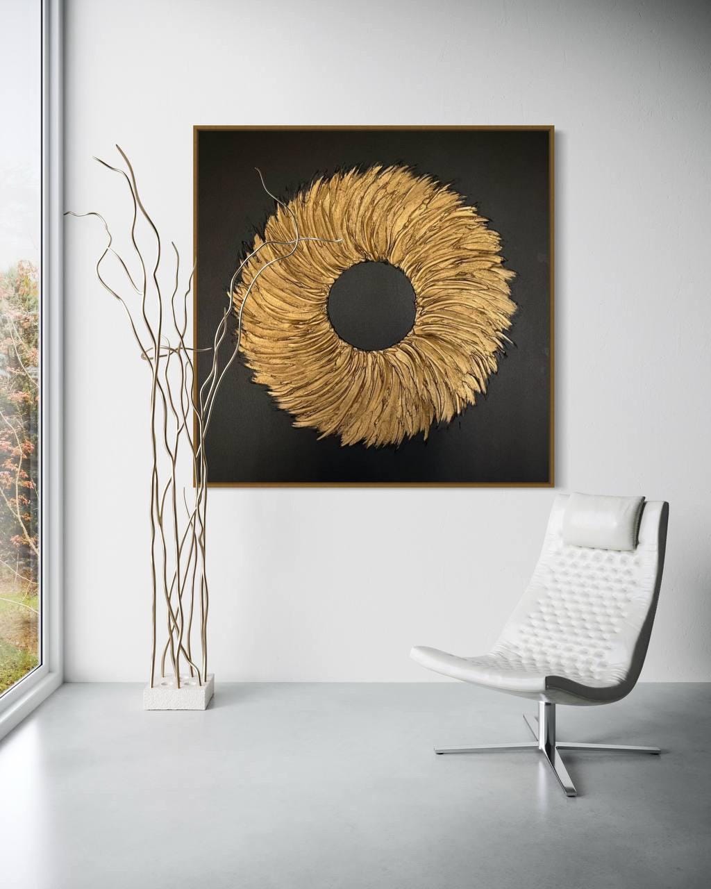 Extra Large Painting Gold 3d Texture Wreath Wall Art Decor Hallway Oversized 3d plaster Modern Canvas Original Painting Black Bronze picture