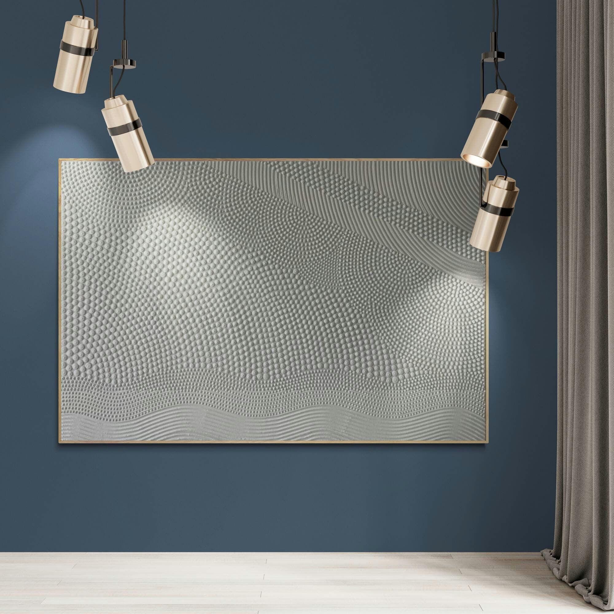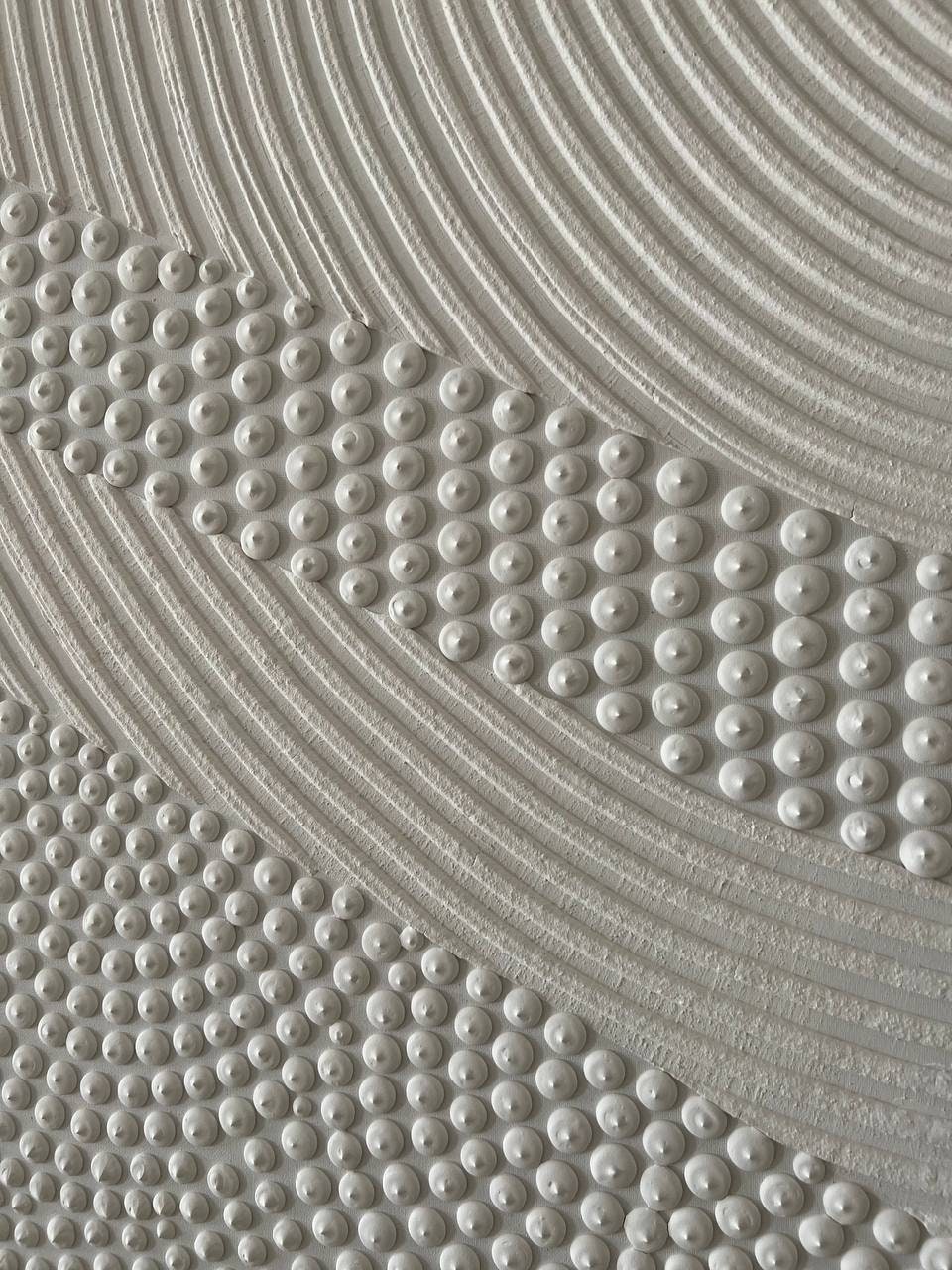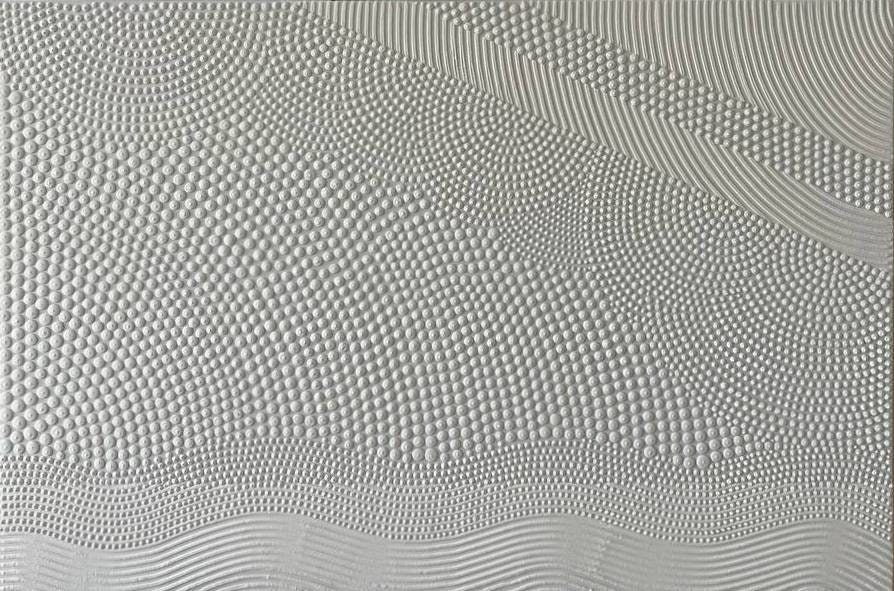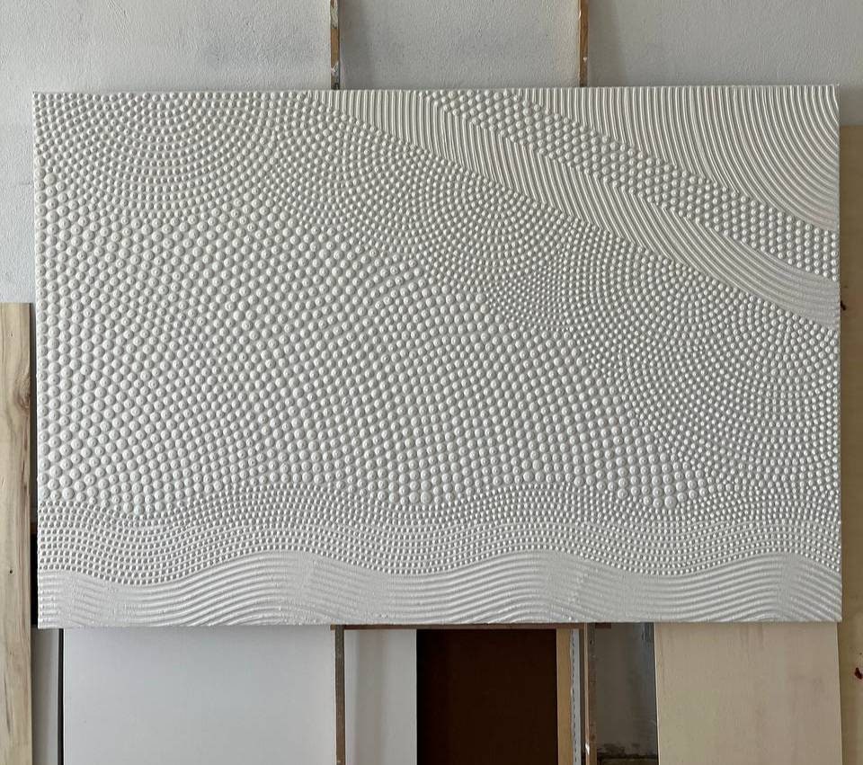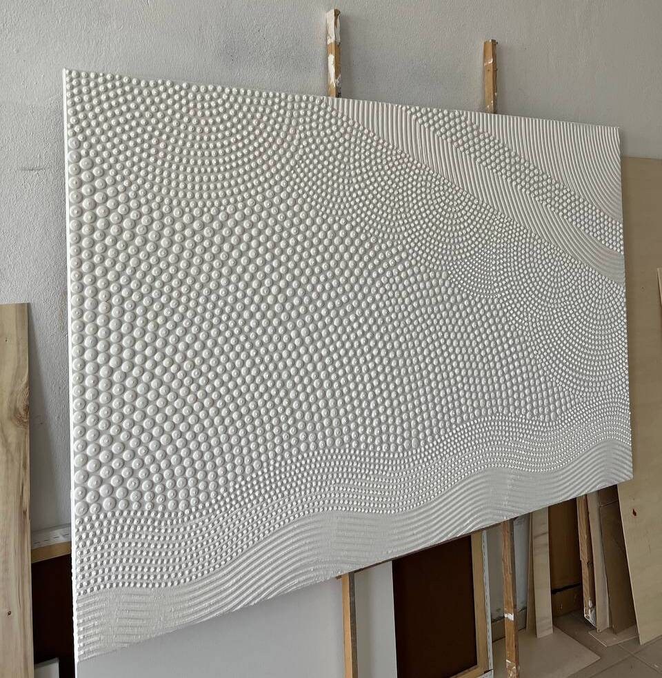 -Large White Textured Wall Art- Transform your space with this hand-sculpted, neutral 3D textured wall art, created in calming organic waves and dotted geometric rhythm. Each raised dot and curved relief line is made fully by hand — no prints, no molds — resulting in a tactile, sculptural surface that feels both architectural and soft.