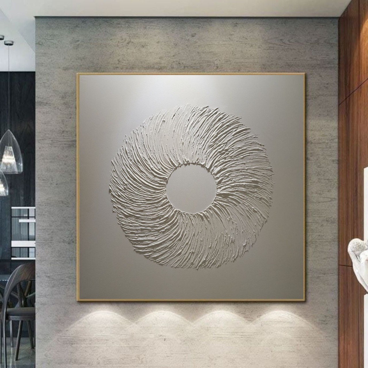Large White Textured Wall Art Plaster Wreath 3d Painting Modern Handmade Canvas Hallway Home Decor