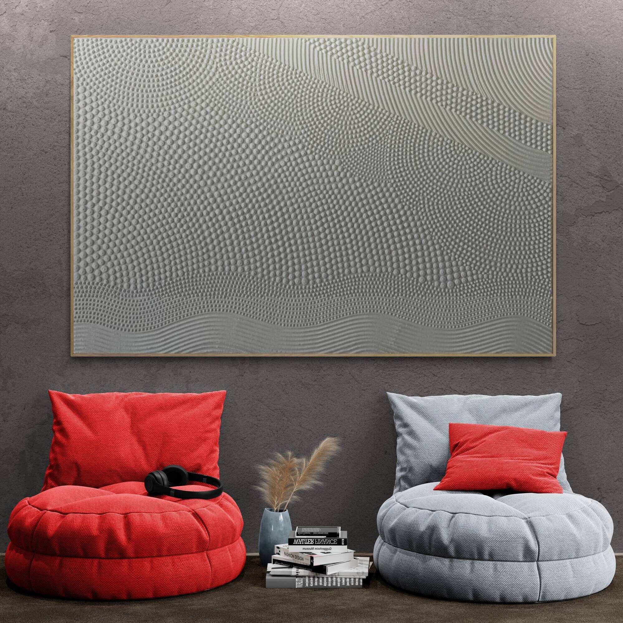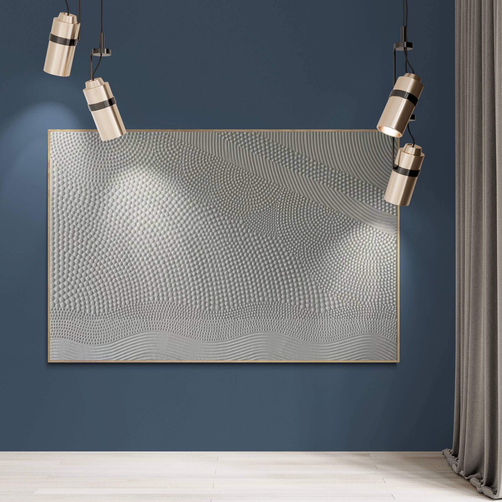 Transform your space with this hand-sculpted, neutral 3D textured wall art, created in calming organic waves and dotted geometric rhythm. Each raised dot and curved relief line is made fully by hand — no prints, no molds — resulting in a tactile, sculptural surface that feels both architectural and soft.