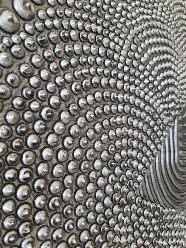 The surface is created with raised 3D dot texture and flowing relief lines, giving the artwork depth, movement, and a refined modern character.