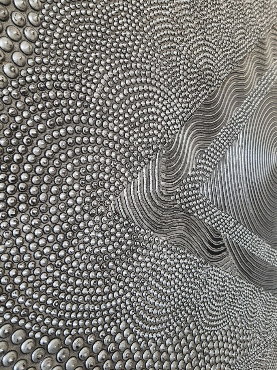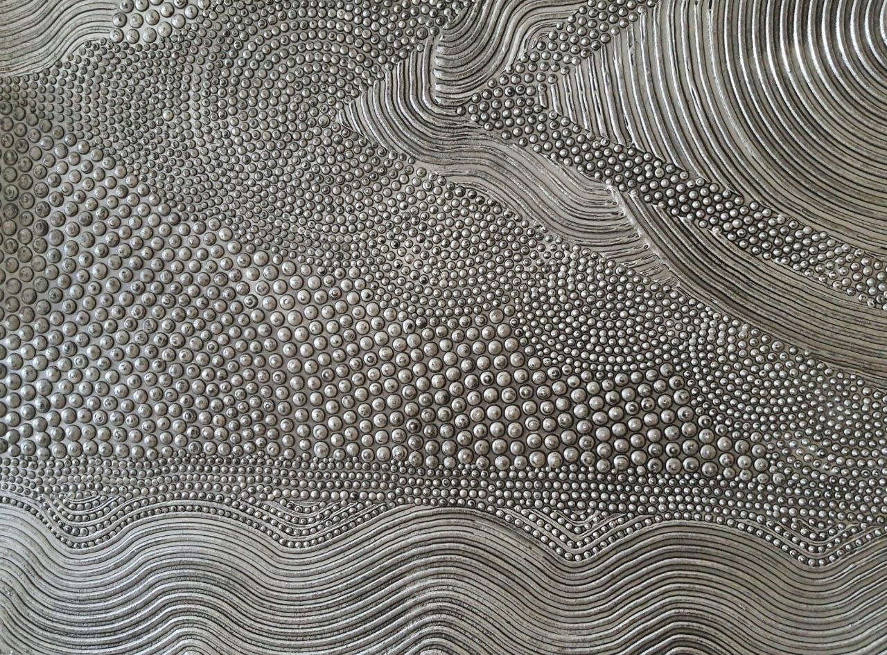 The surface is created with raised 3D dot texture and flowing relief lines, giving the artwork depth, movement, and a refined modern character.