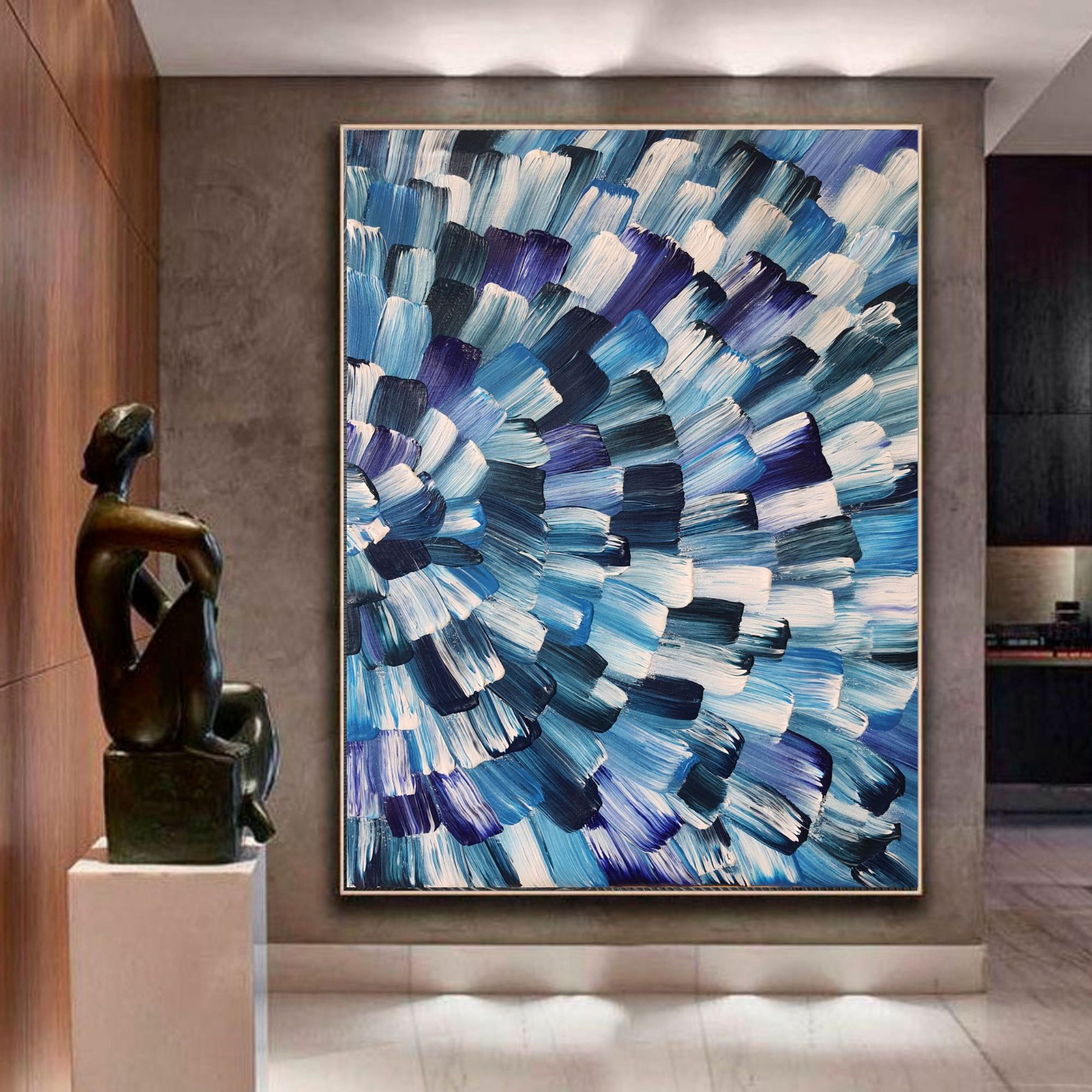 Extra Large Blue White Abstract Original Acrylic Art Canvas Large Blue White Abstract Painting Modern Wall Art Canvas Mosaic Painting Office