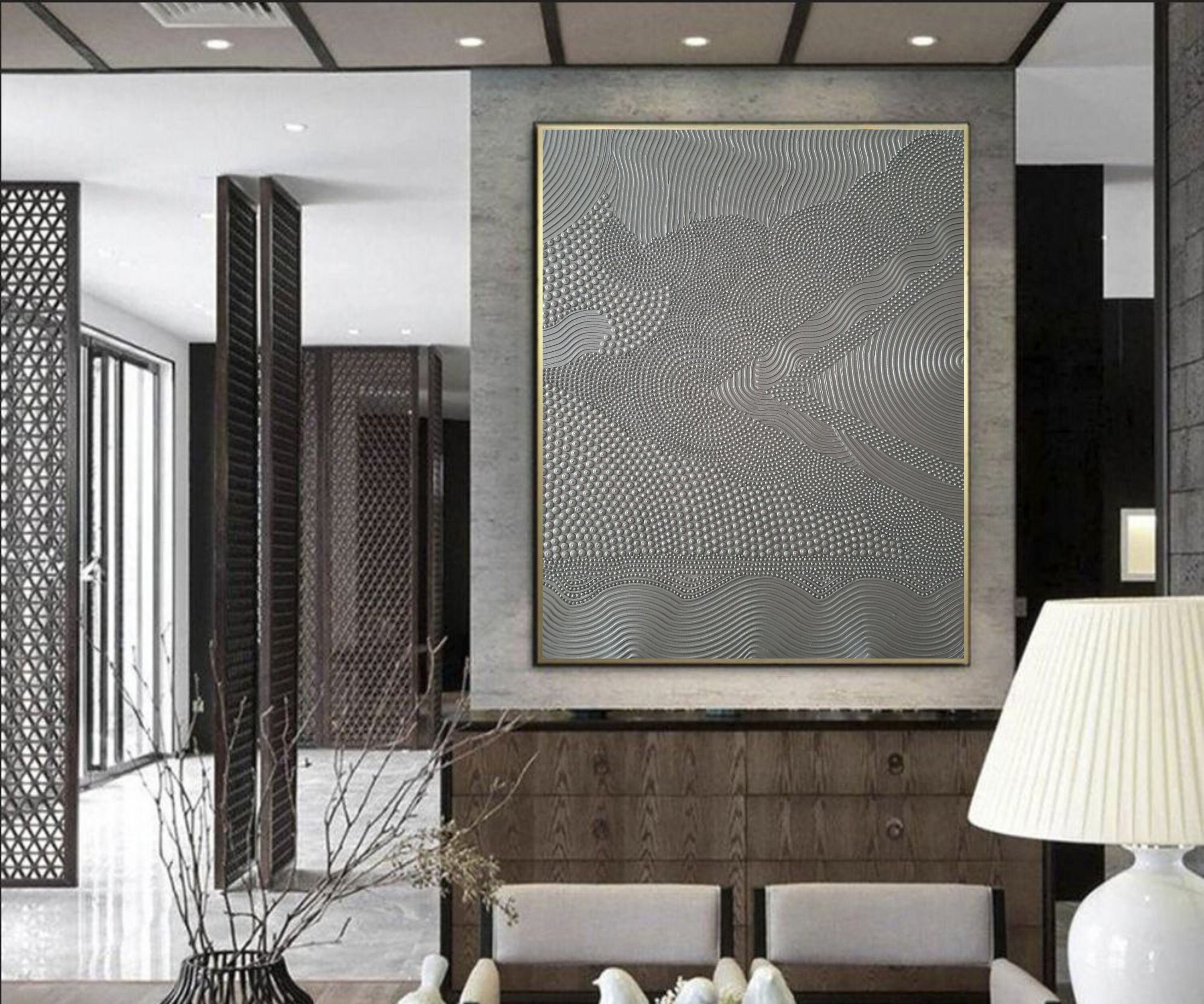 Oversized Textured Wall Art 3D Dot| Silver Abstract Metallic Painting | Handmade Canvas Modern Minimal Wall Decor | Custom Size