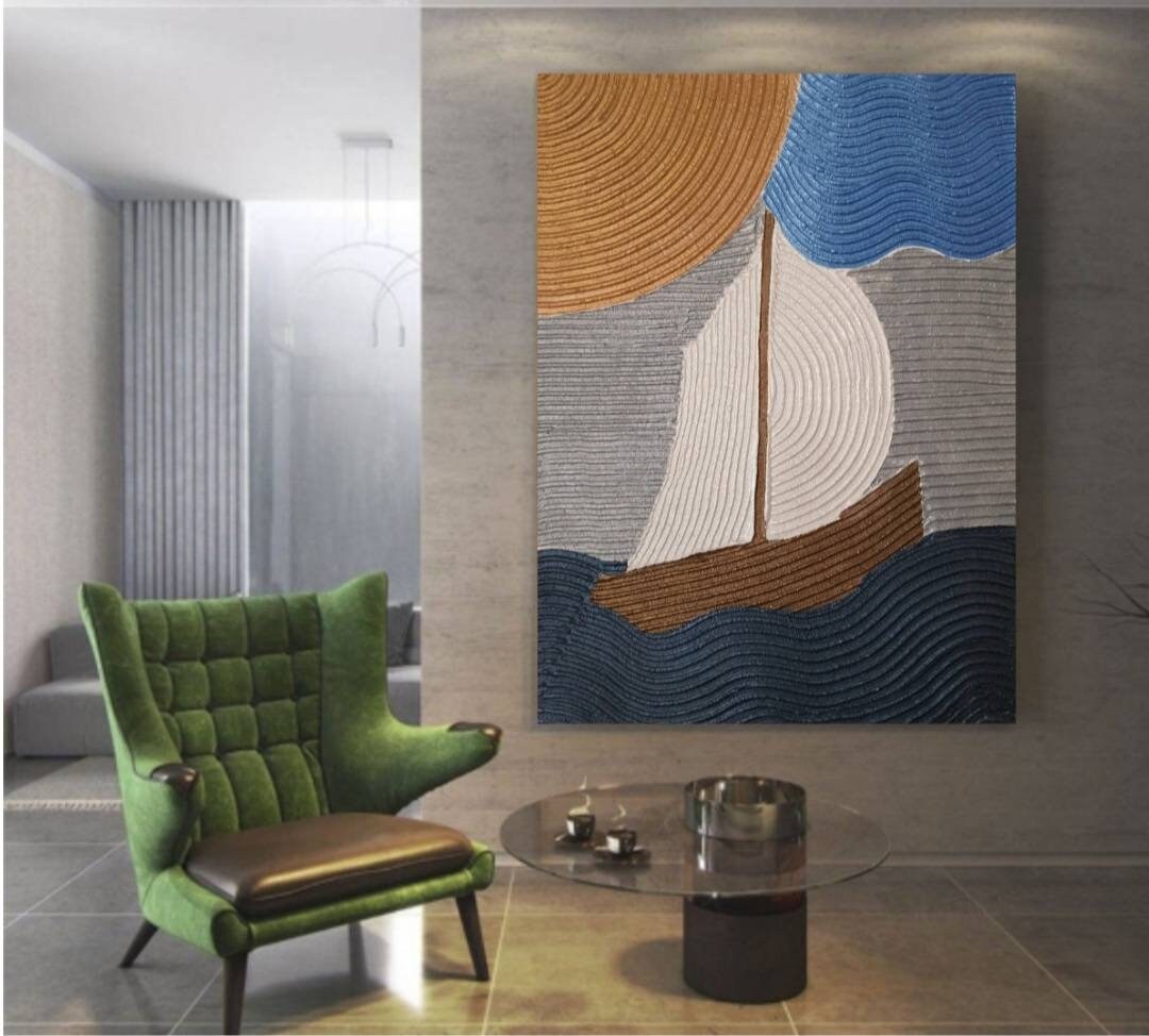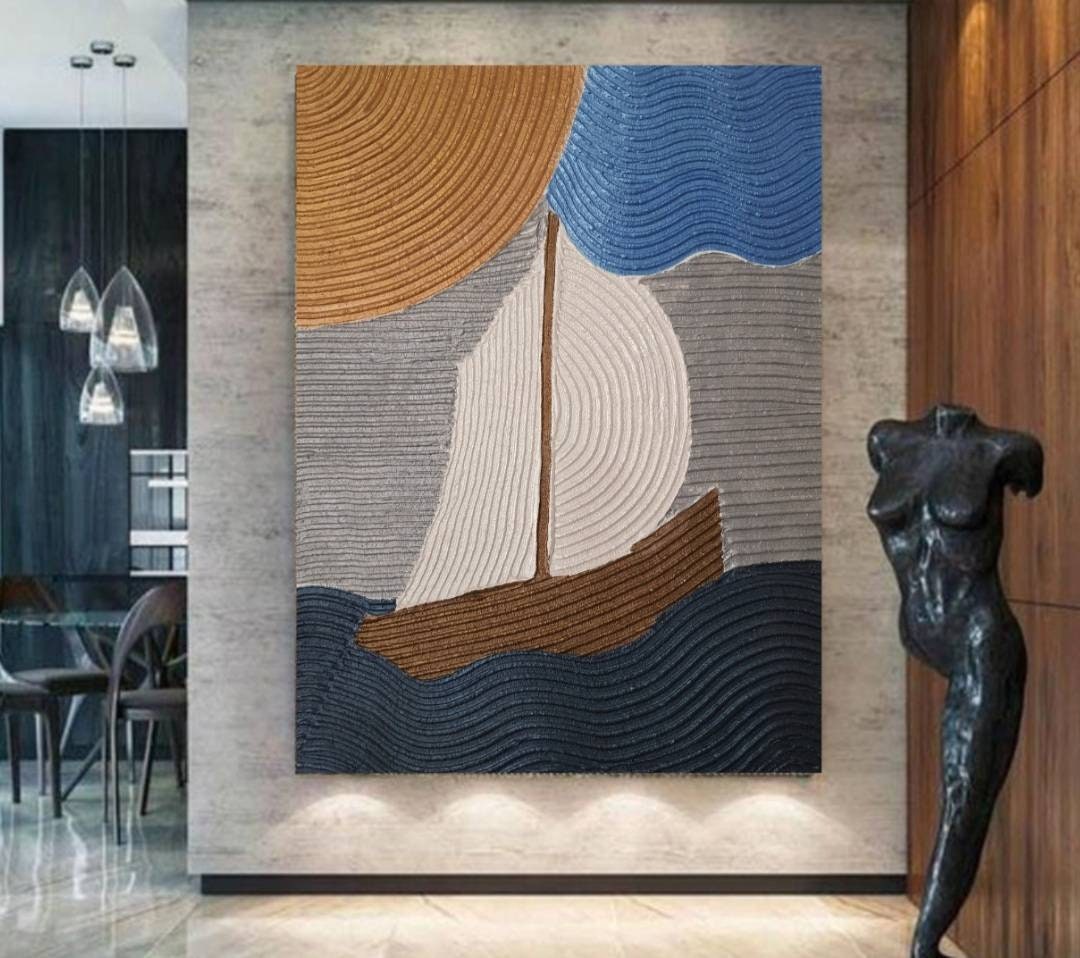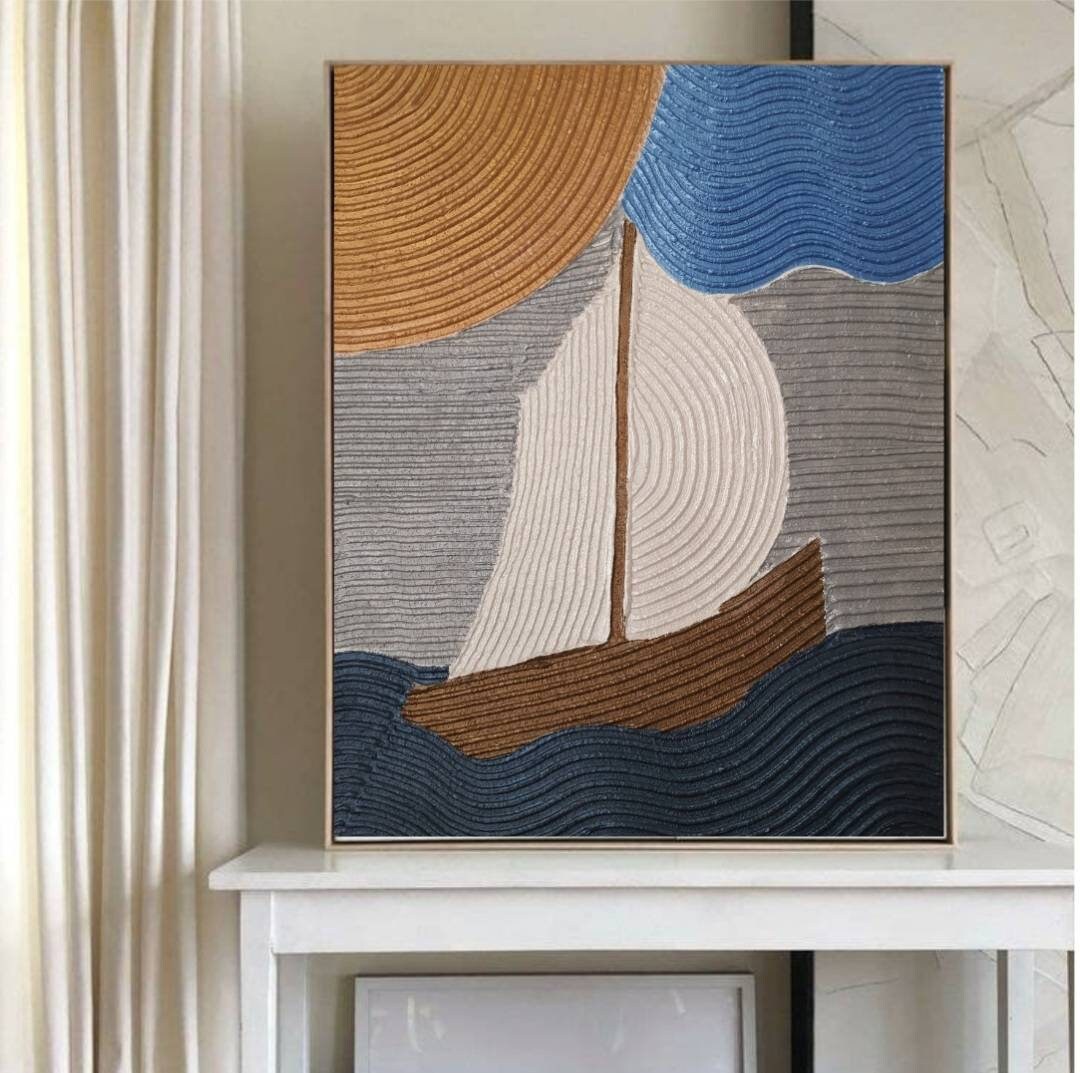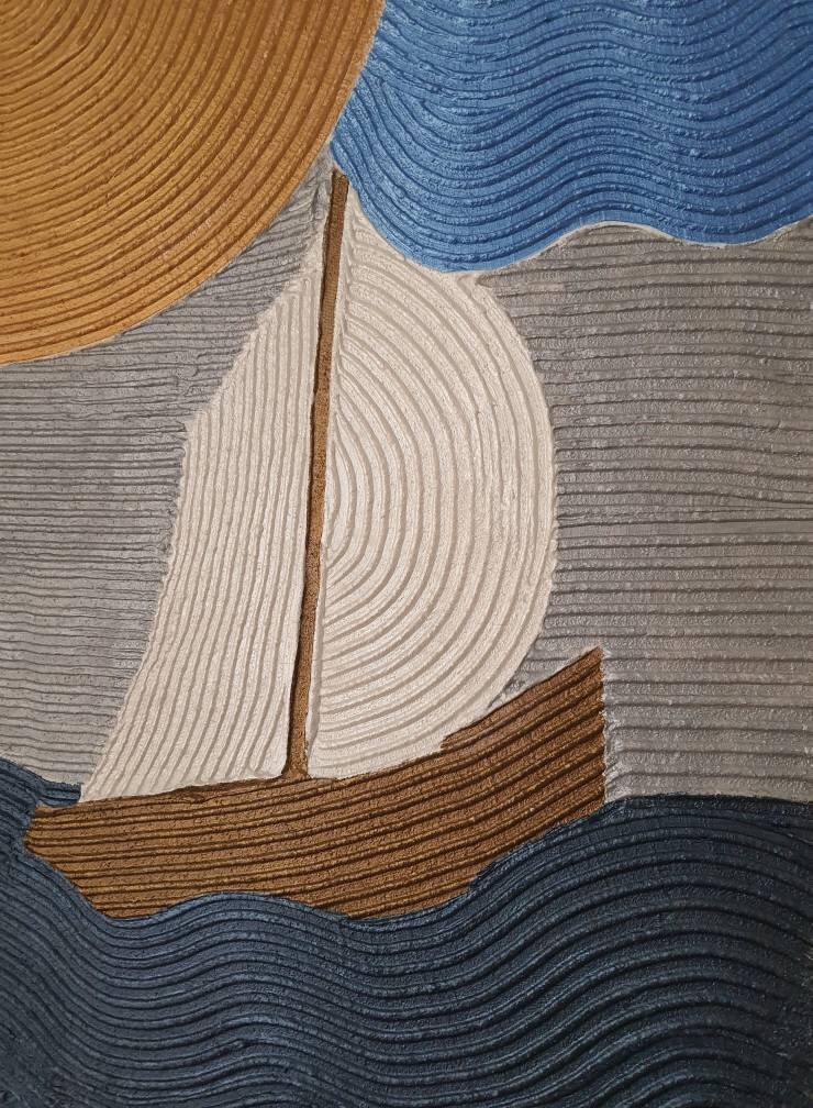 Textured Sailboat Plaster Painting, 3D Coastal Wall Art
