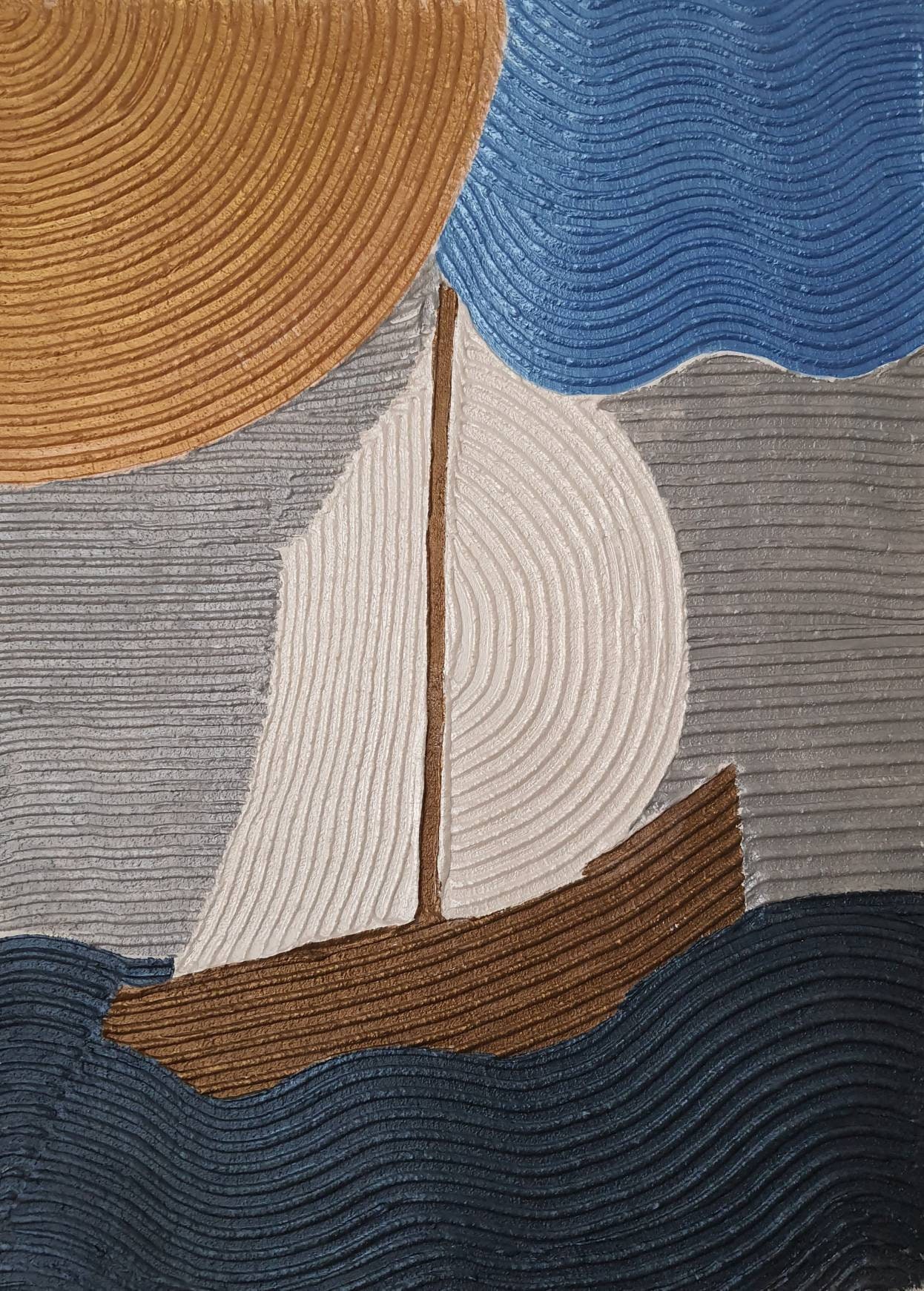 Original hand-crafted textured painting with an abstract sailboat motif.