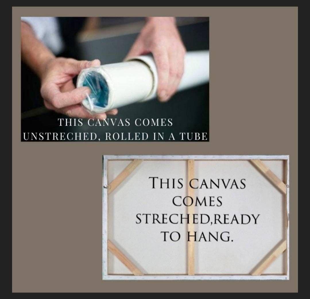 "Unstretched" - Painting on not stretched canvas, rolled in a tube. In this case, you'll have to stretch this canvas in the nearest art workshop.