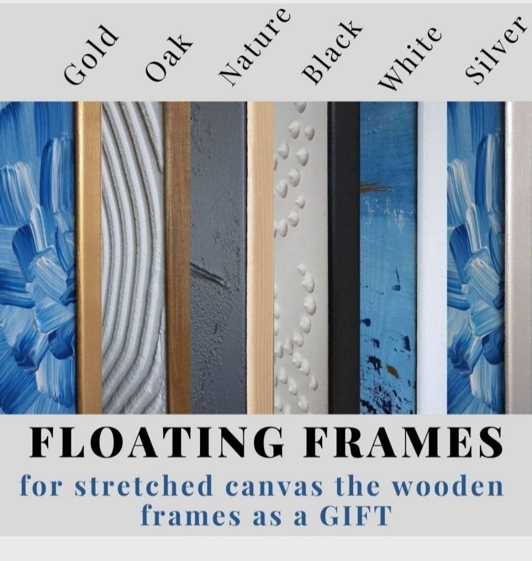 I provide wooden floating frames for stretched canvas painting as a GIFT. You can order colors that are suitable for your interior ( Black, White, Gold, Silver, Natural):