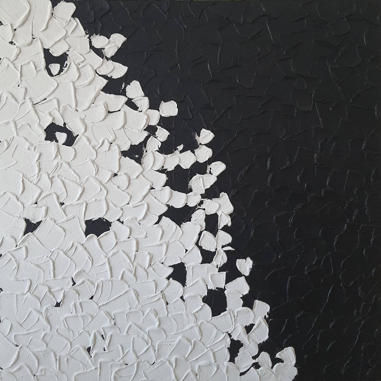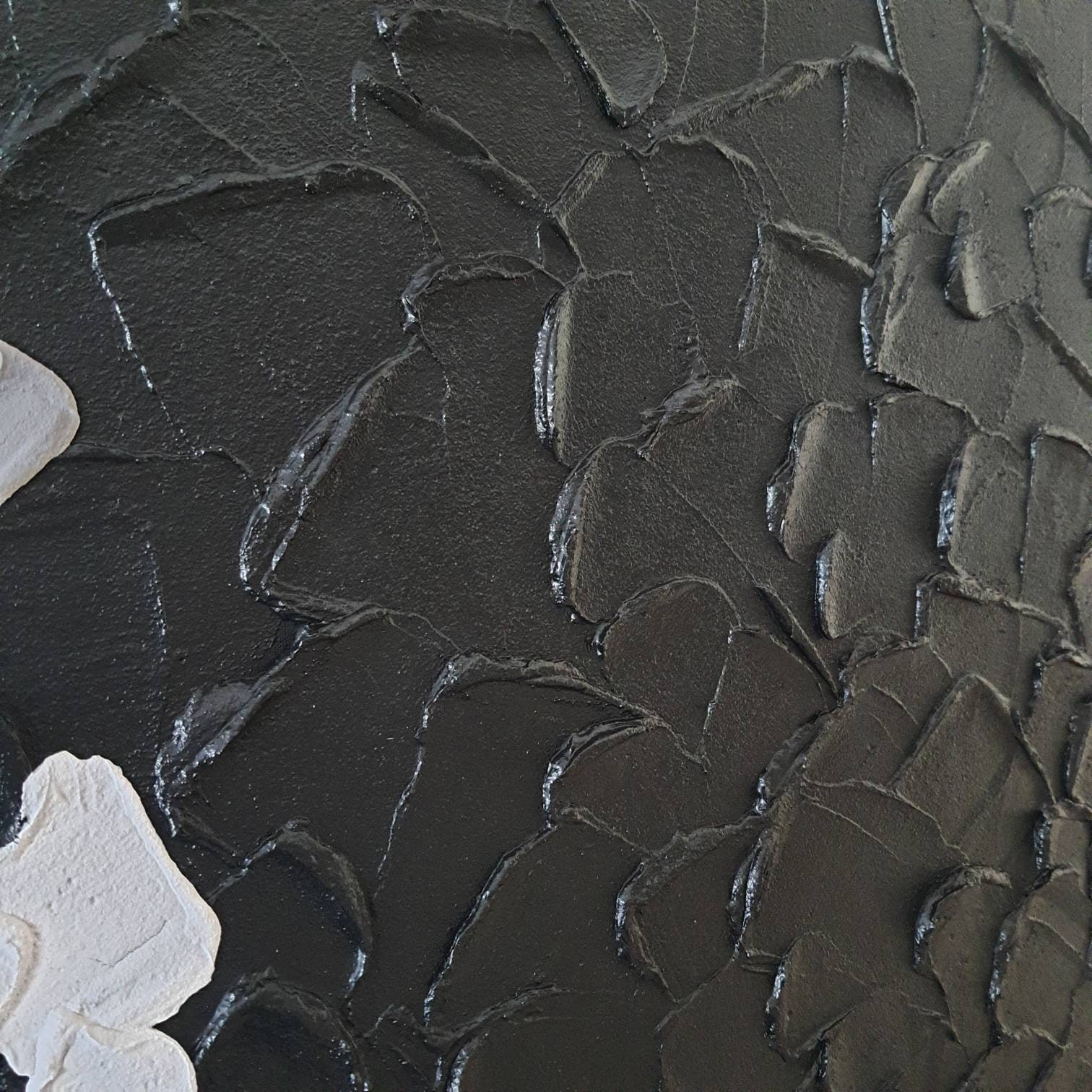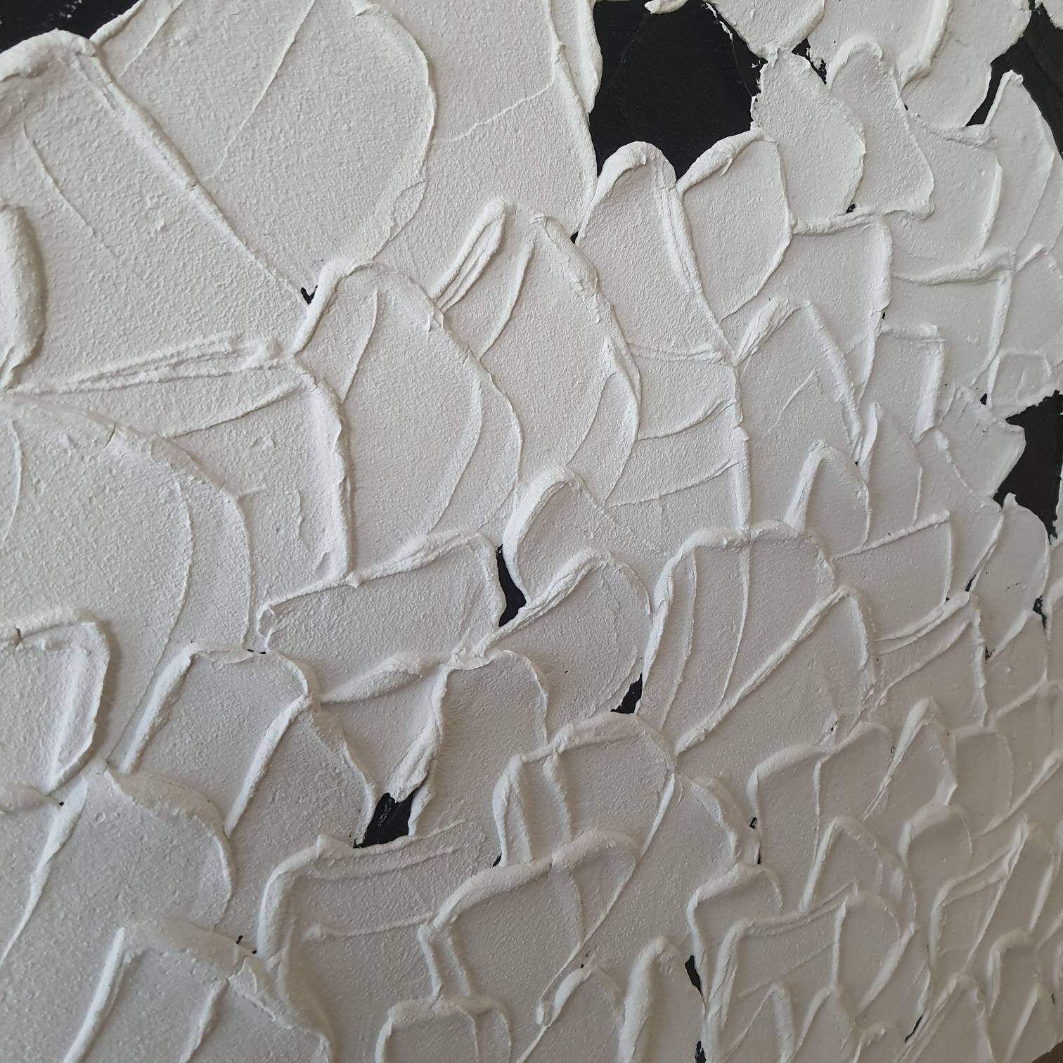 This large black and white abstract textured painting is a bold, modern statement artwork, created entirely by hand using textured techniques to achieve a rich 3D surface.