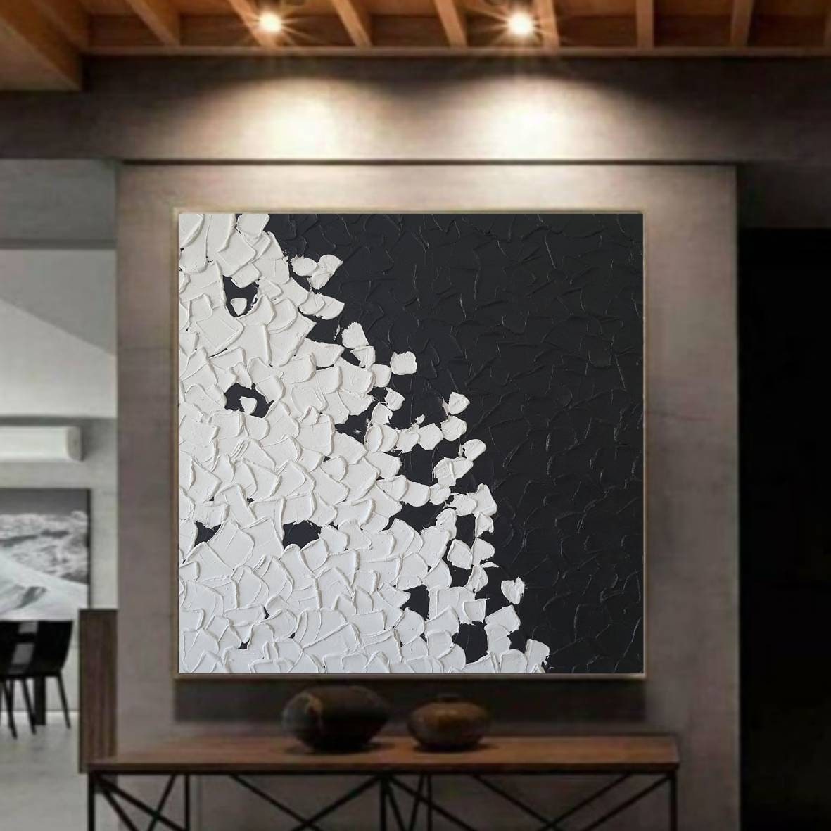 Textured Black and White Painting: Large Abstract Canvas Wall Art