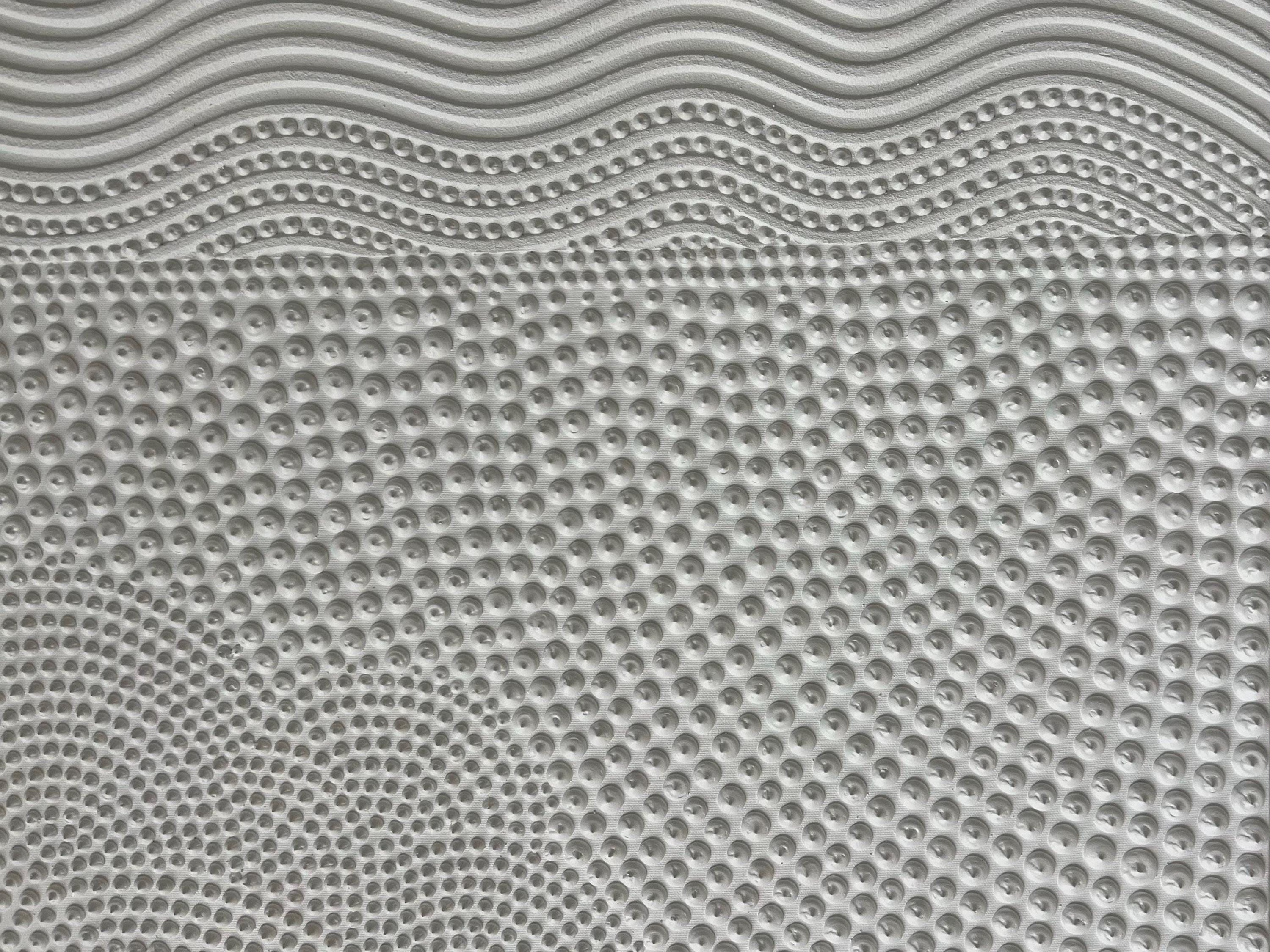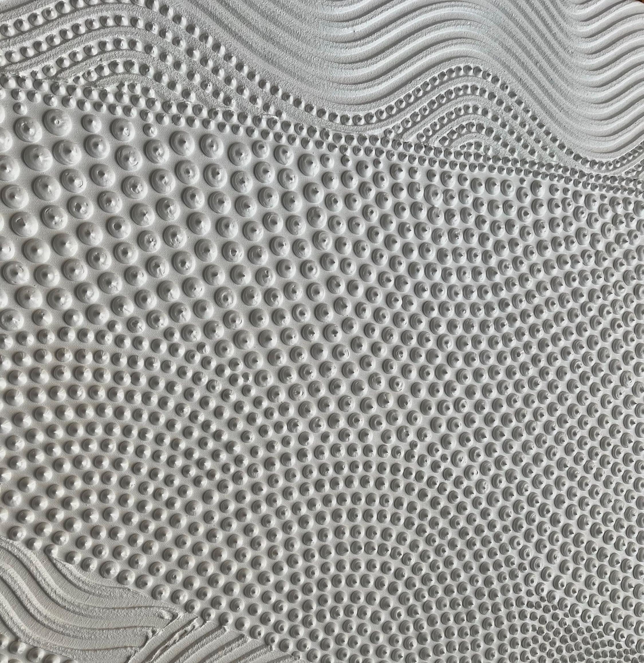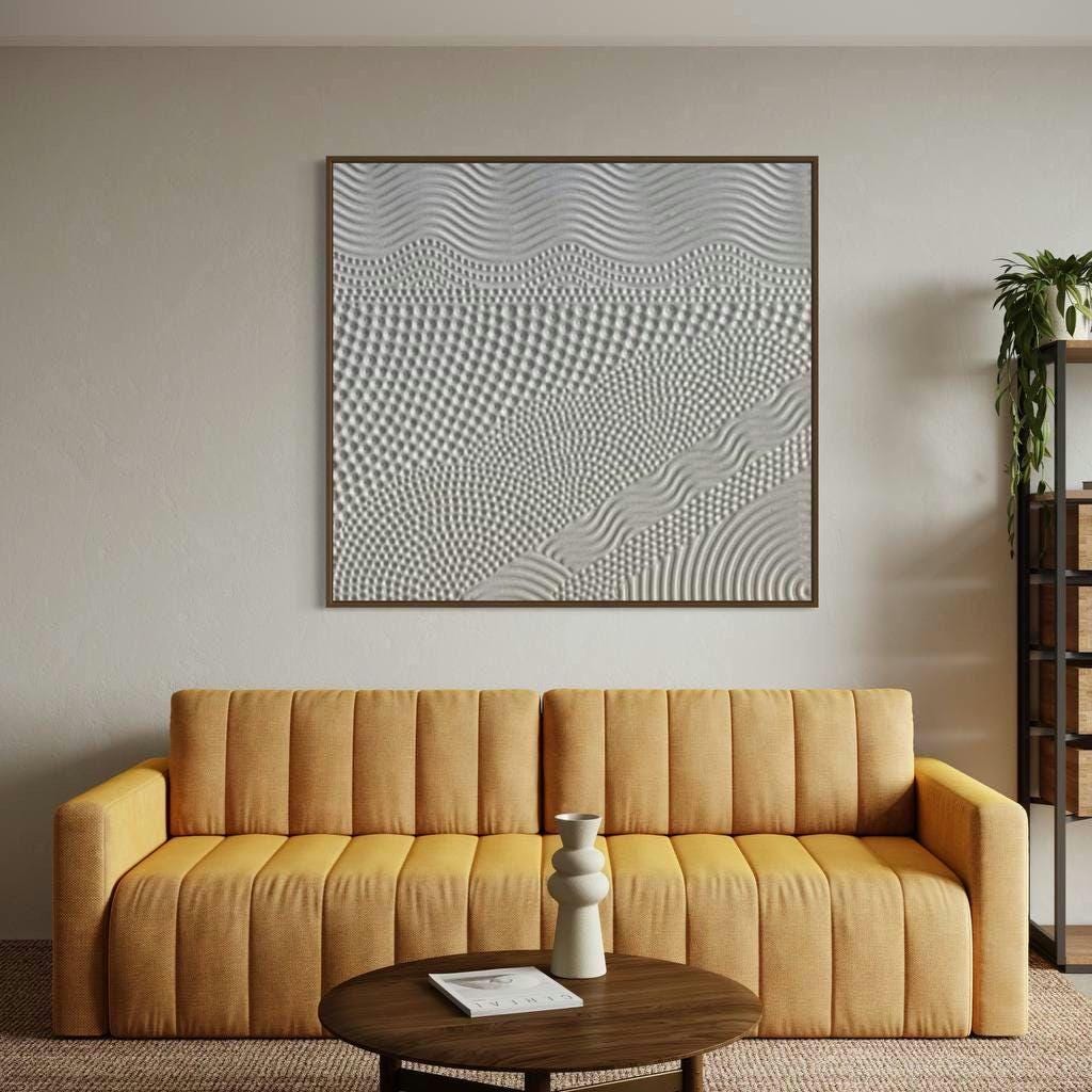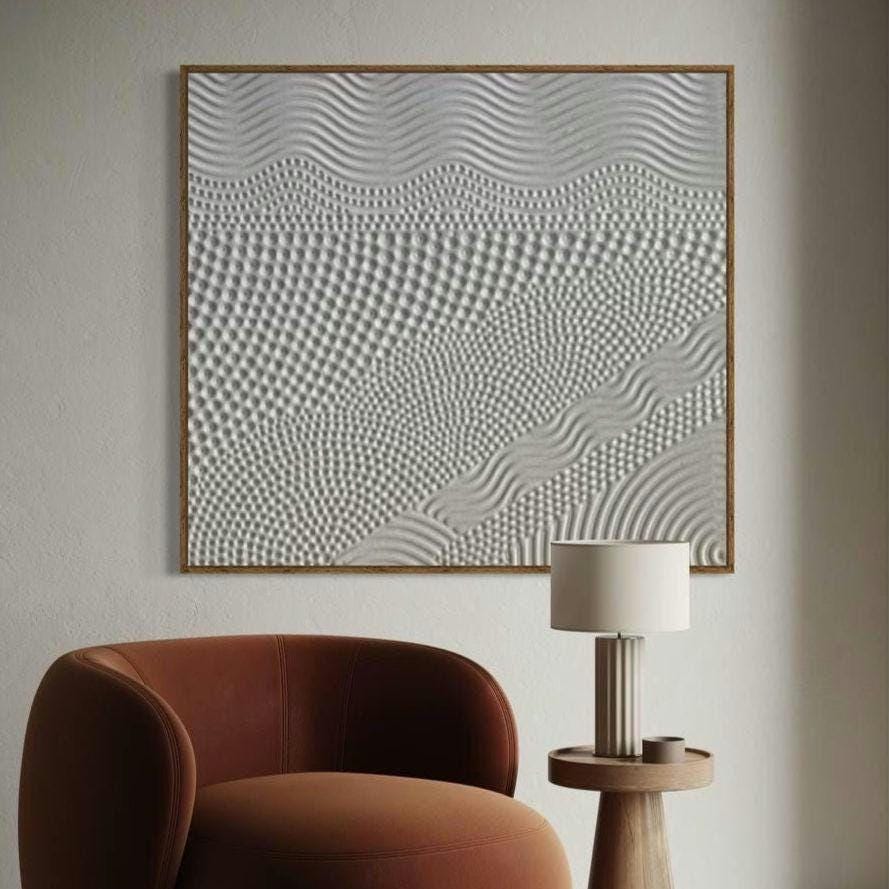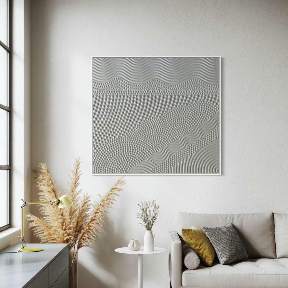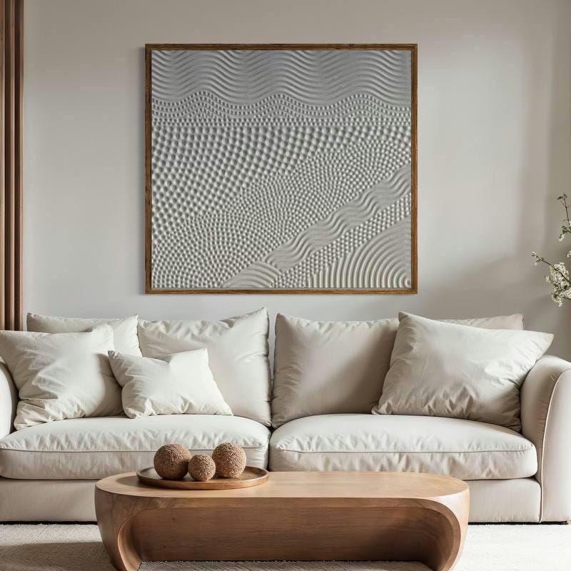 Transform your space with this hand-sculpted, neutral 3D textured wall art, created in calming organic waves and dotted geometric rhythm. Each raised dot and curved relief line is made fully by hand — no prints, no molds — resulting in a tactile, sculptural surface that feels both architectural and soft.