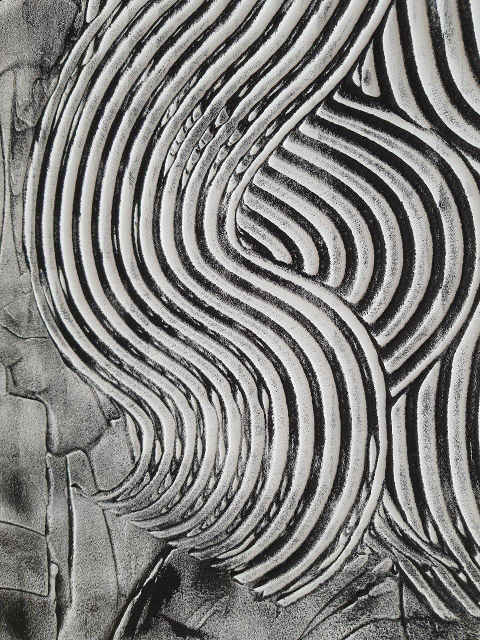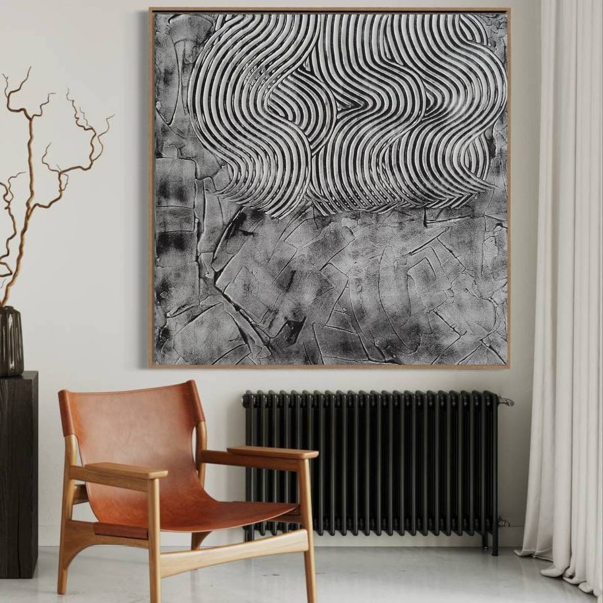 Oversized Black and White Abstract Textured Painting: Modern Stone Canvas Art