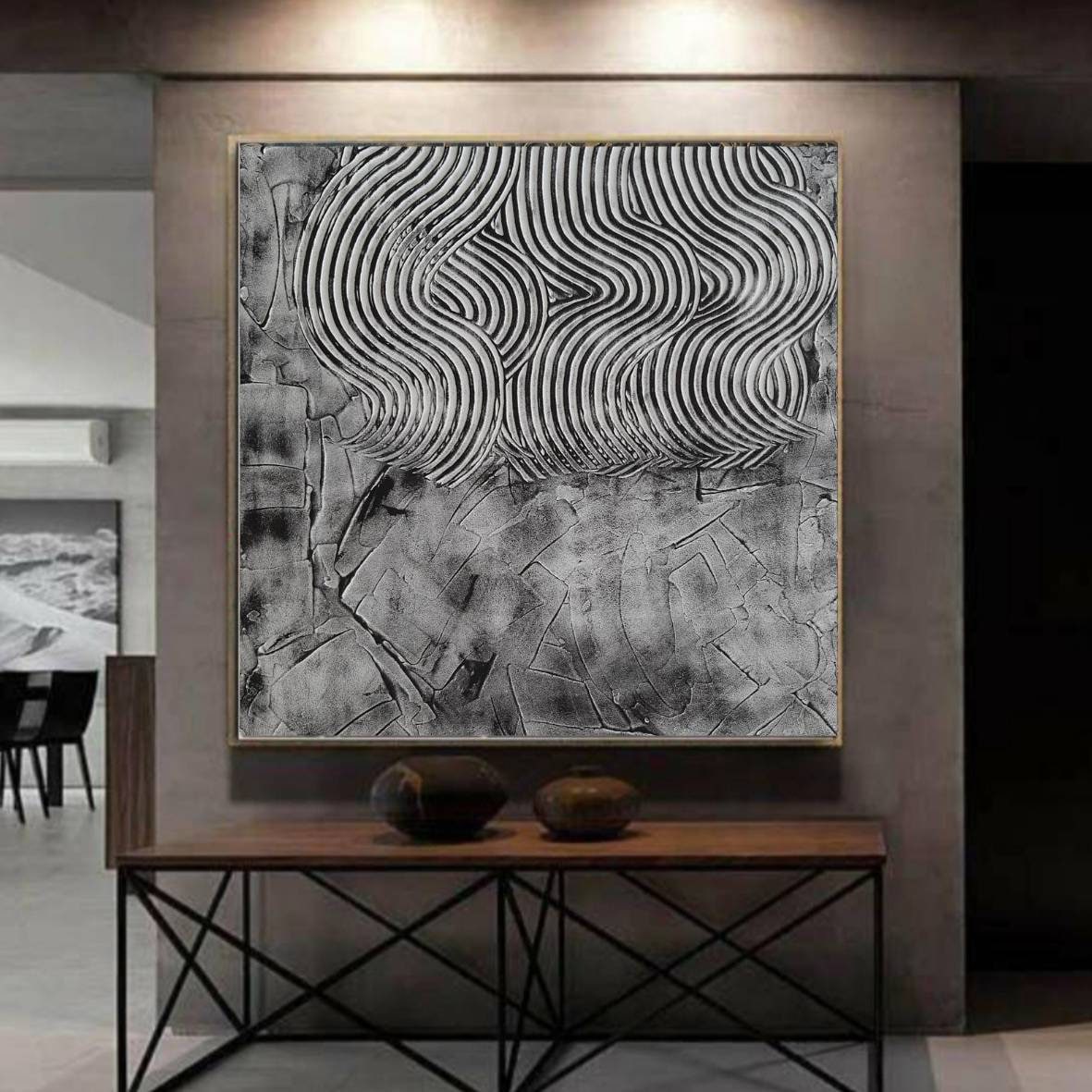 Large Painting Black White Rich Texture Oversize Abstract Art Hallway Modern Black White Stone Texture Canvas
