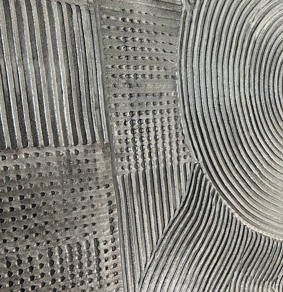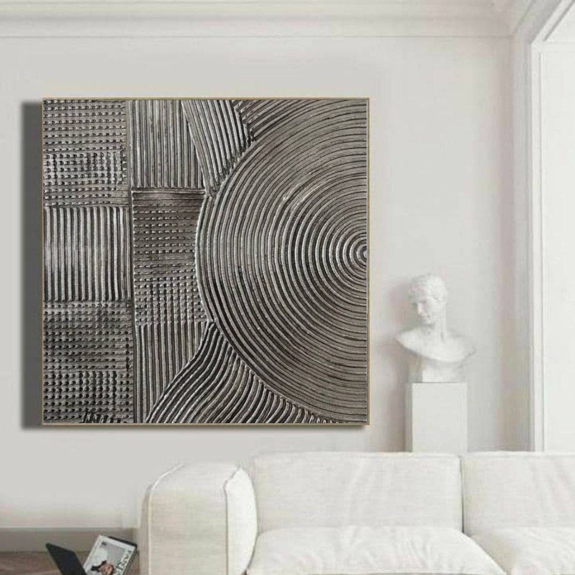 Large Silver Abstract Painting: 3D Metallic Texture Canvas Wall Art