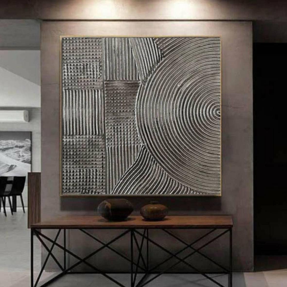 Large Painting Silver Rich Texture Oversized Abstract Wall Art Hallway Modern Metallic Texture Canvas