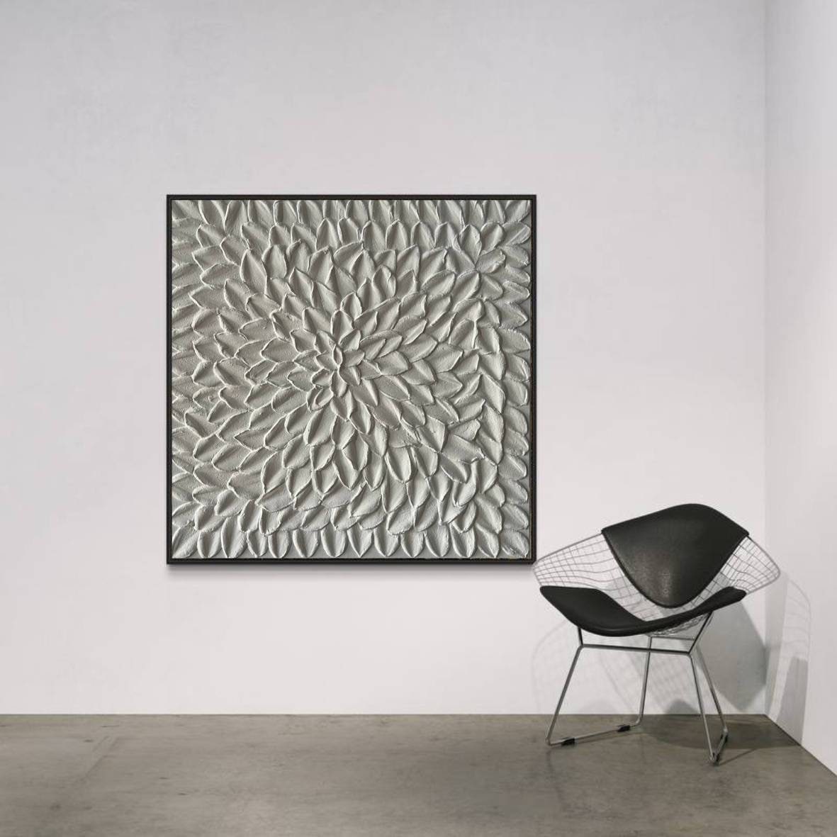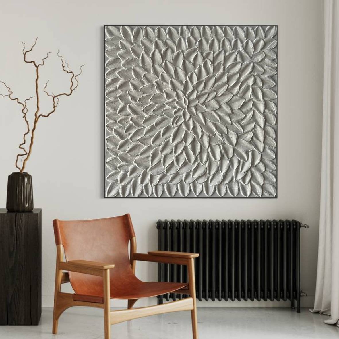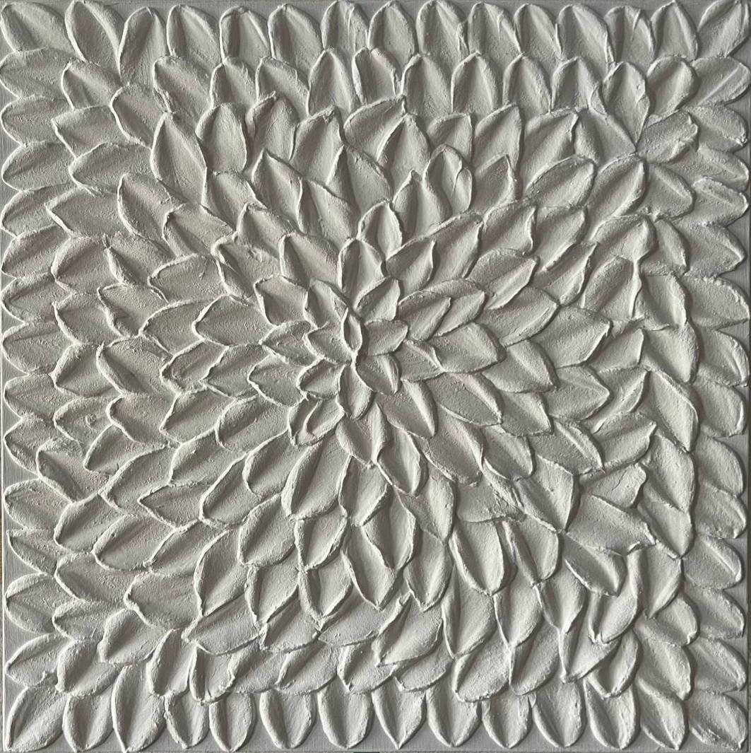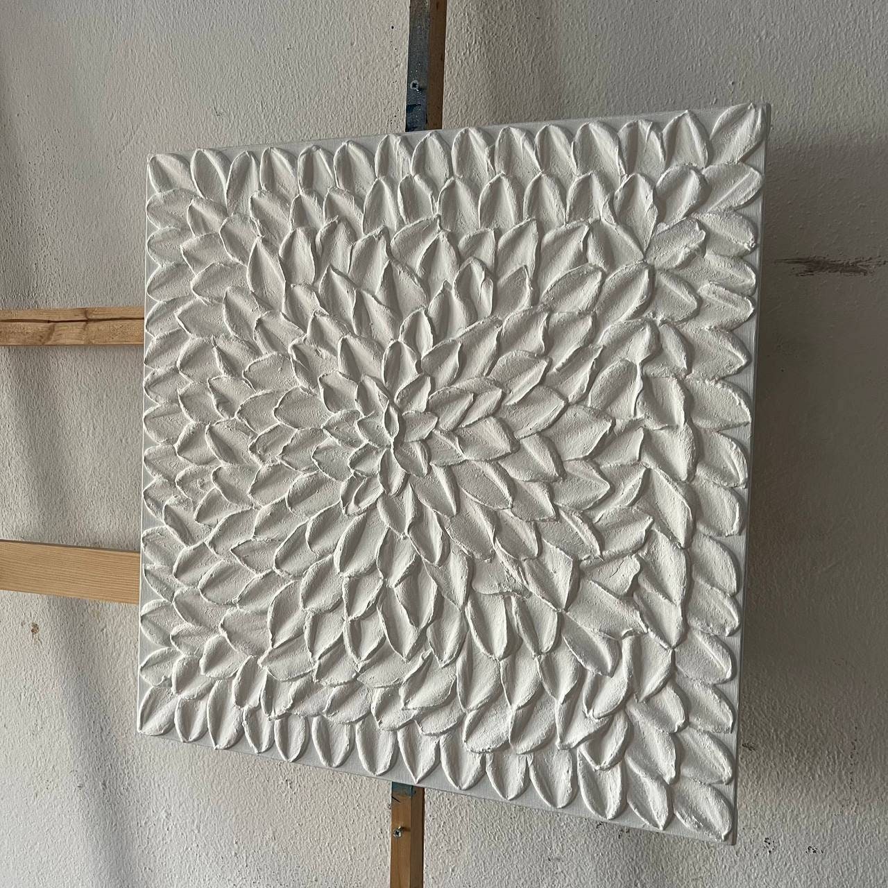 Large White Textured Wall Art Oversized Abstract Painting 3D Plaster Floral Modern Canvas Handmade Home Decor