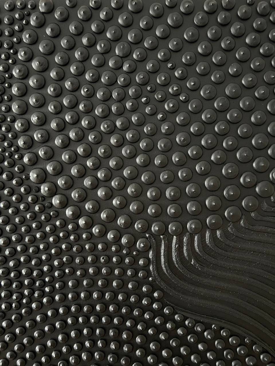 Large textured abstract wall art in black color, created with sculptural plaster and raised 3D dots.