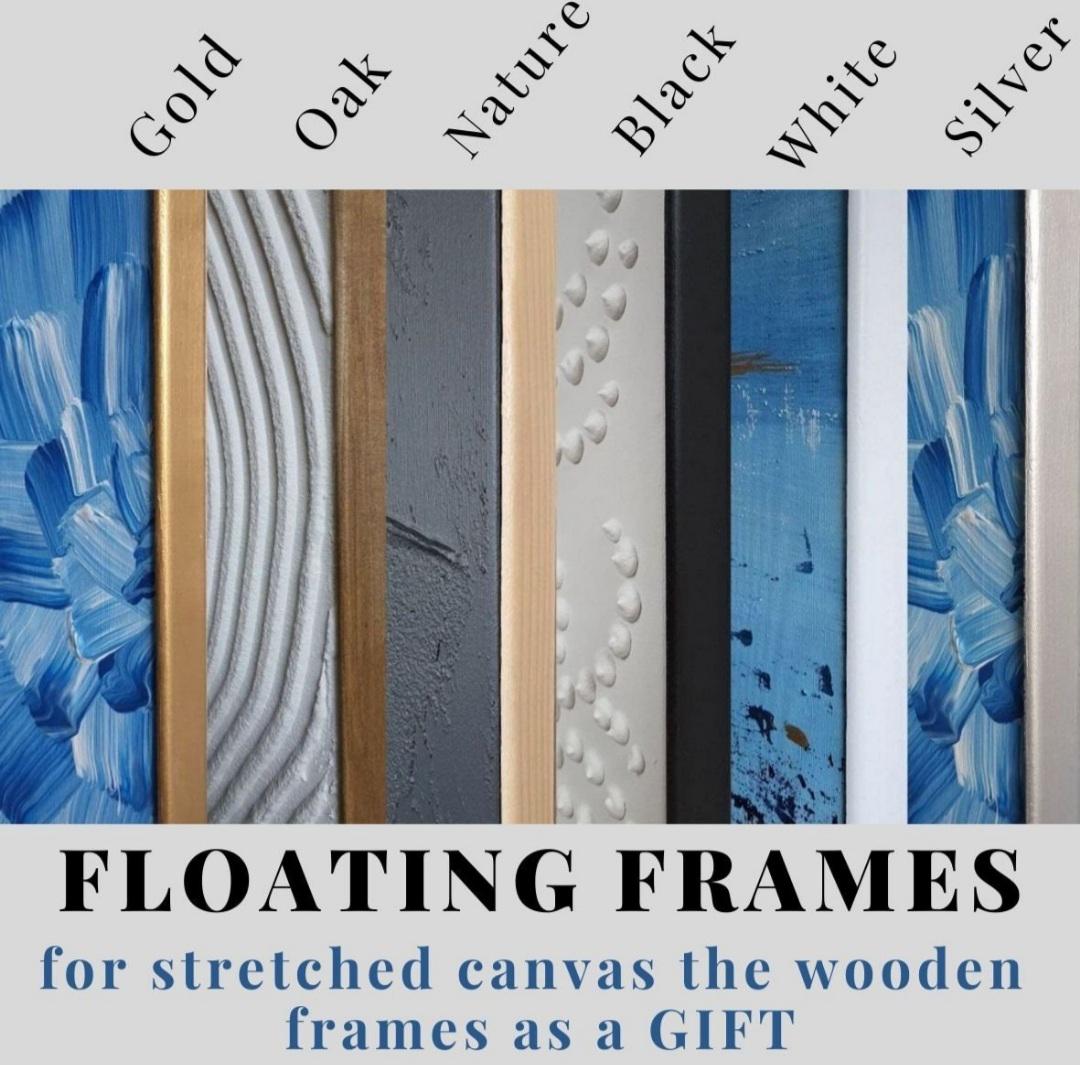 I provide wooden floating frames for stretched canvas painting as a GIFT. You can order colors that are suitable for your interior ( Black, White, Gold, Silver, Natural):