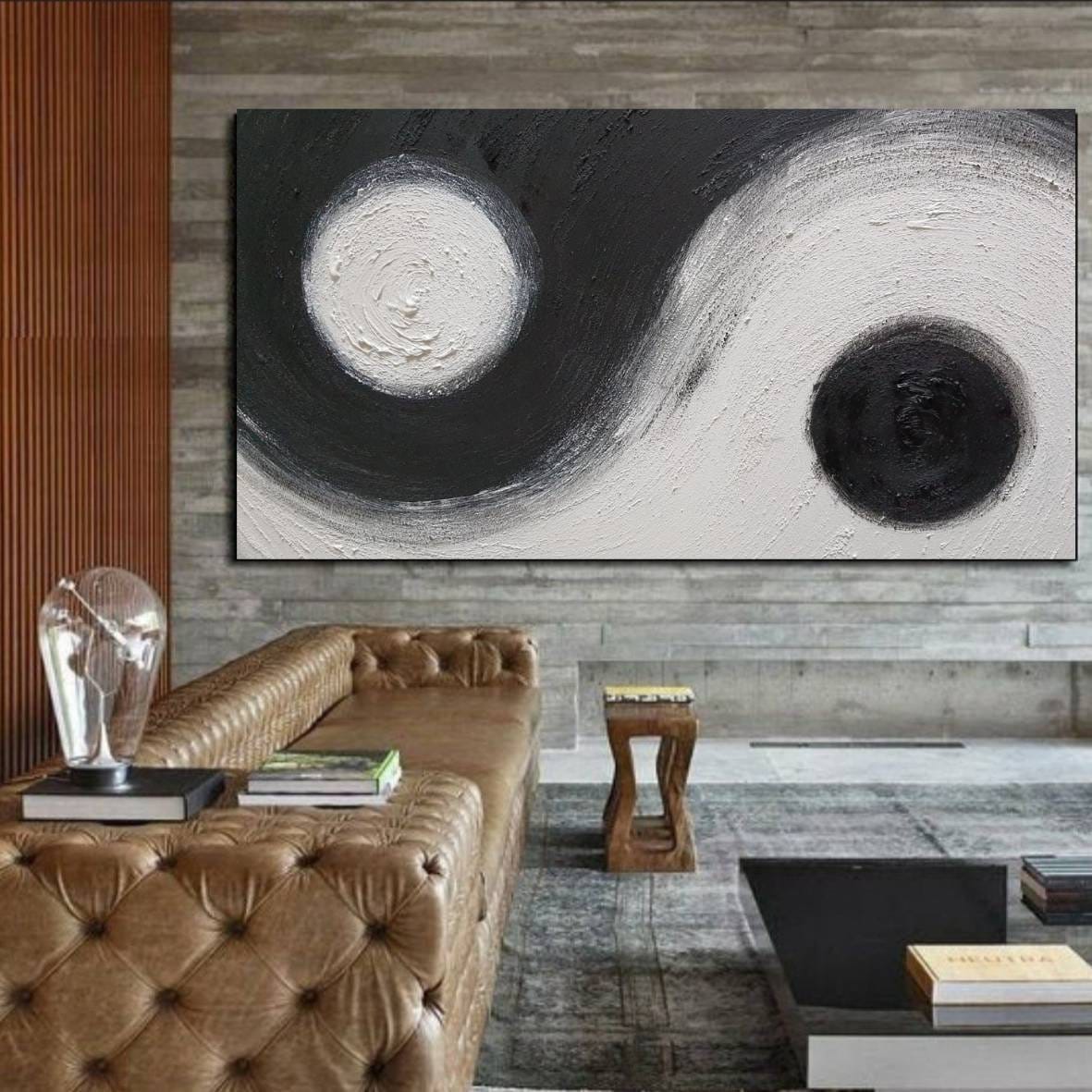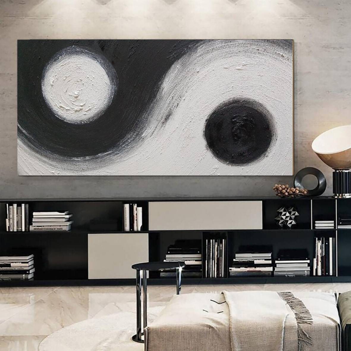 The dynamic contrast of black and white, combined with expressive circular movement, brings balance, depth, and sophistication to any modern interior.