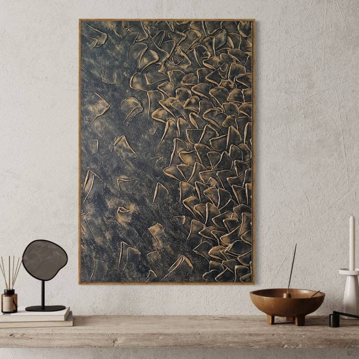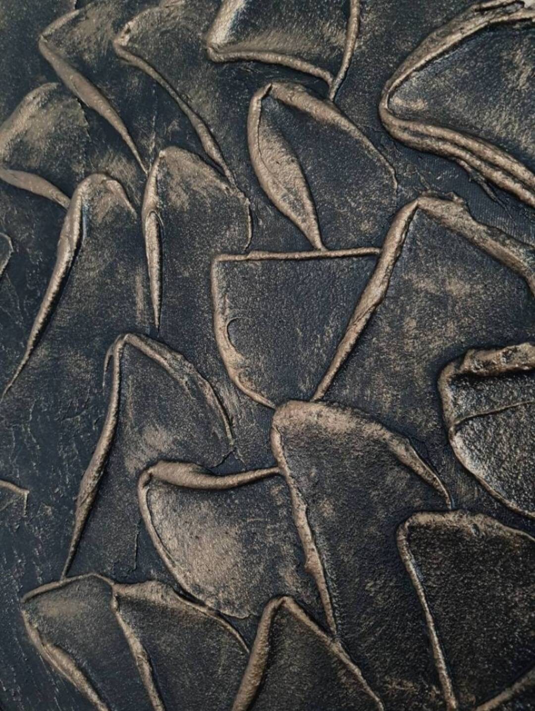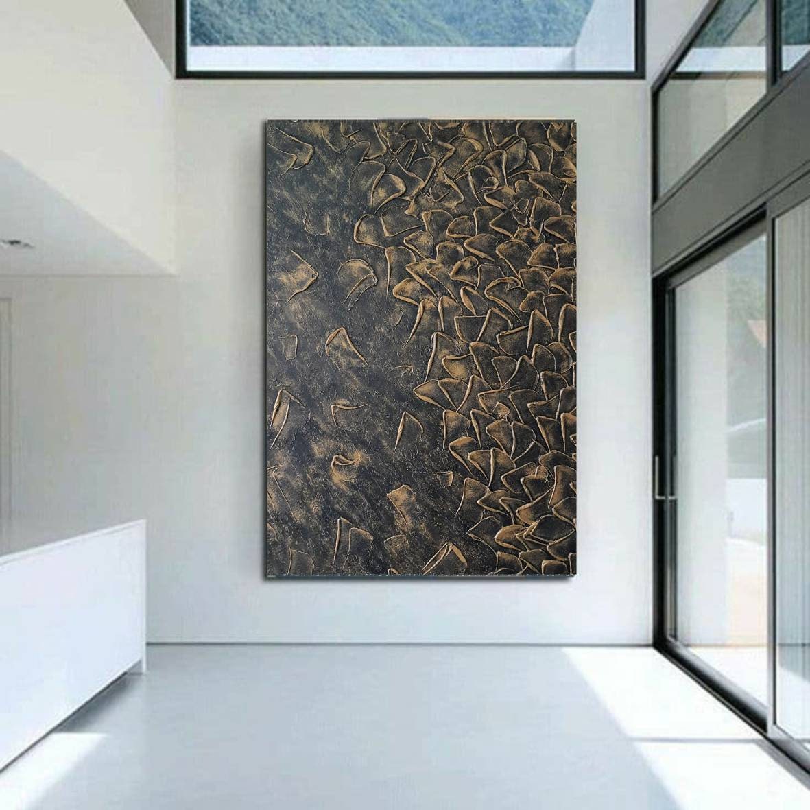 Oversized Textured Wall Art Black Bronze 3d Plaster Painting Abstract Handmade Canvas