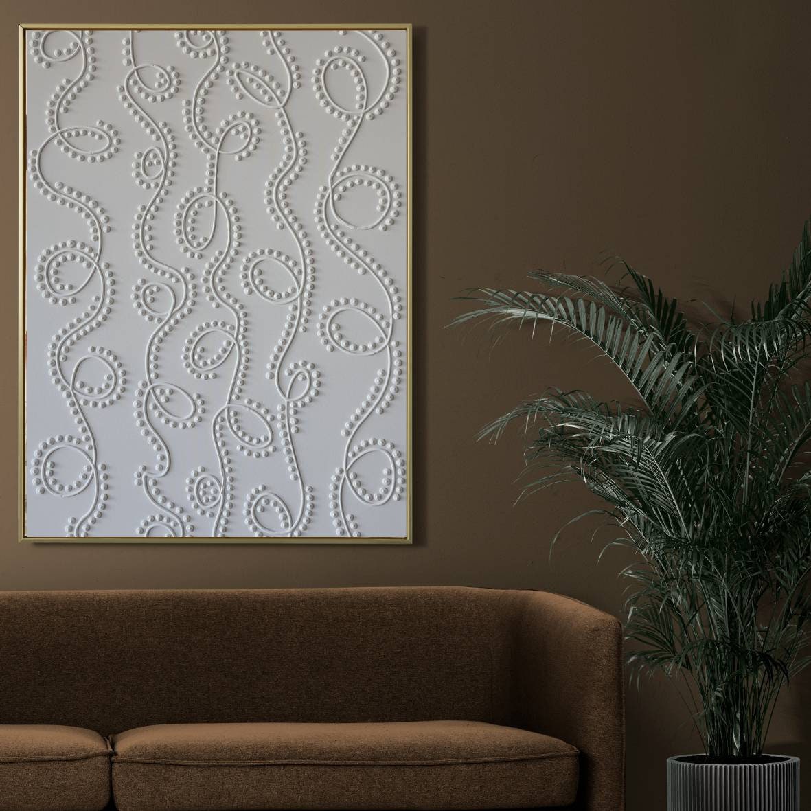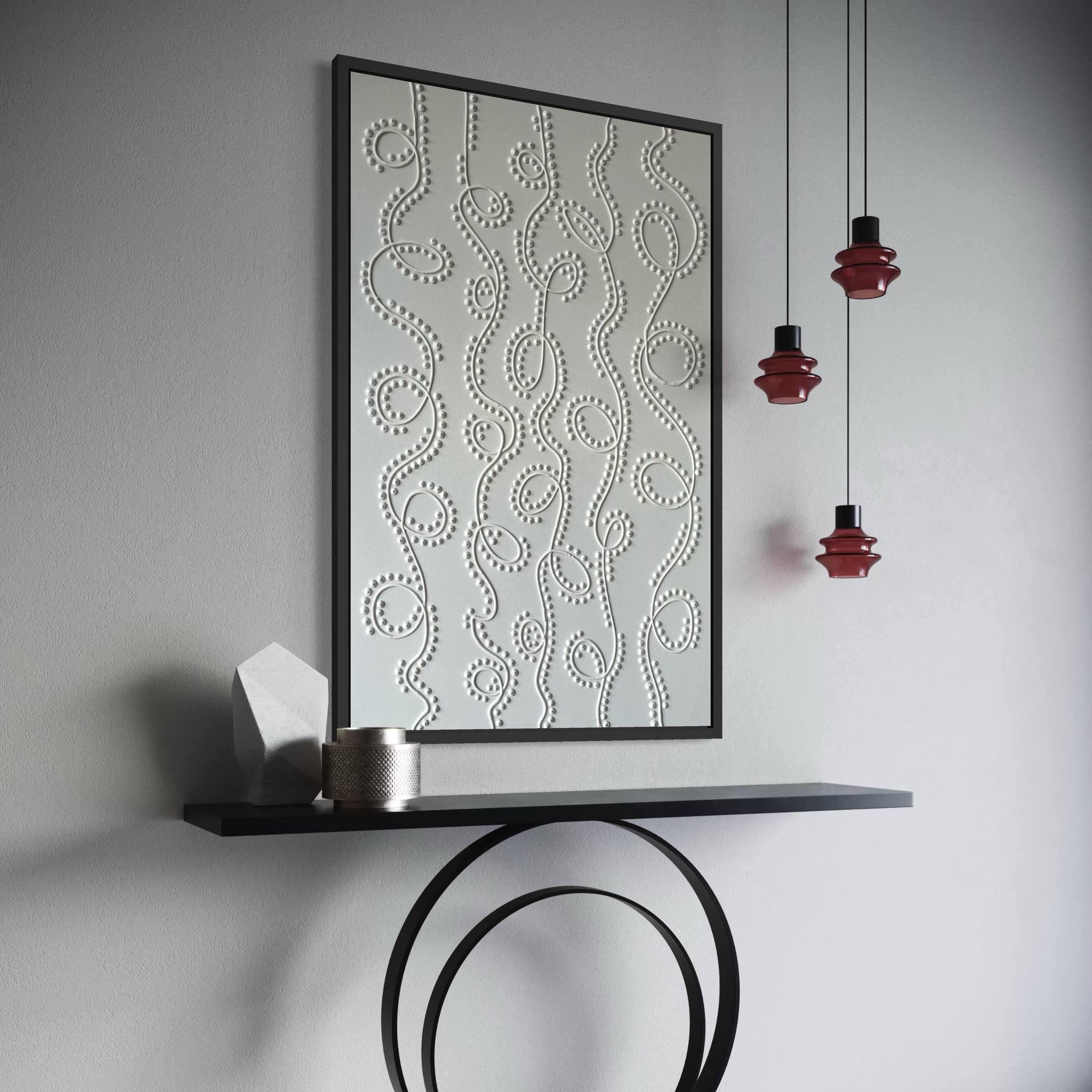 Soft neutral tones and organic flowing 3D dot patterns bring depth, calm, and modern elegance to any interior.