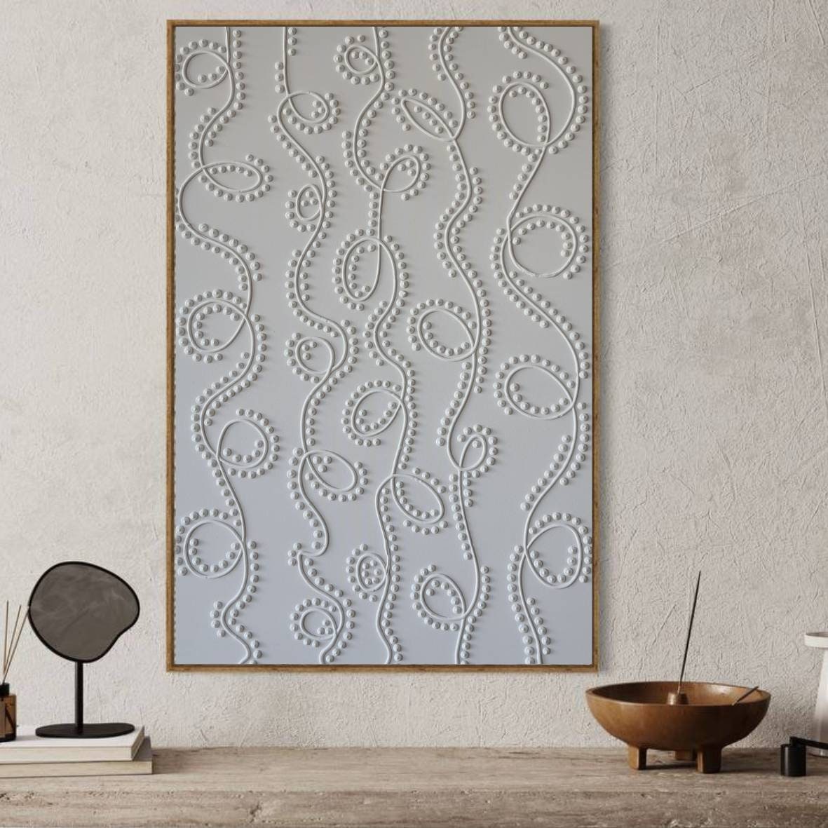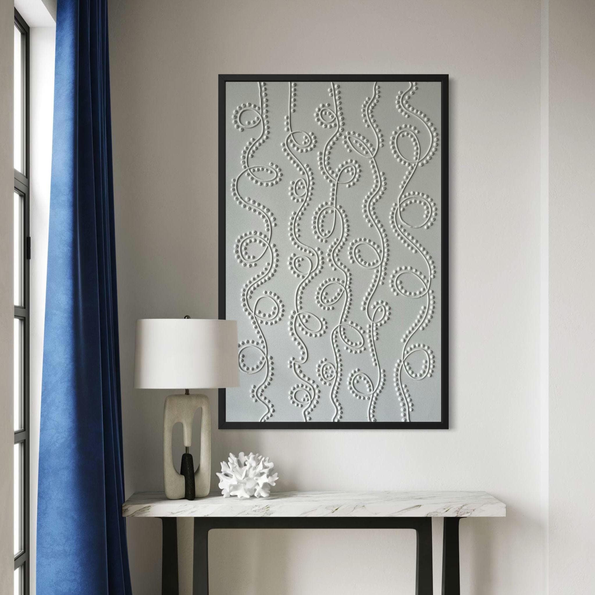 Handmade large textured abstract wall art with 3D dot texture. Perfect neutral modern decor for living rooms, bedrooms, and interiors.