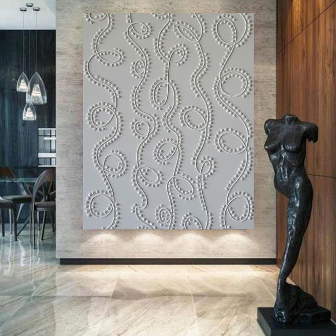 Extra Large White Textured Wall Art Oversized Abstract Painting Handmade Canvas 3D Dot Plaster Neutral Home Decor