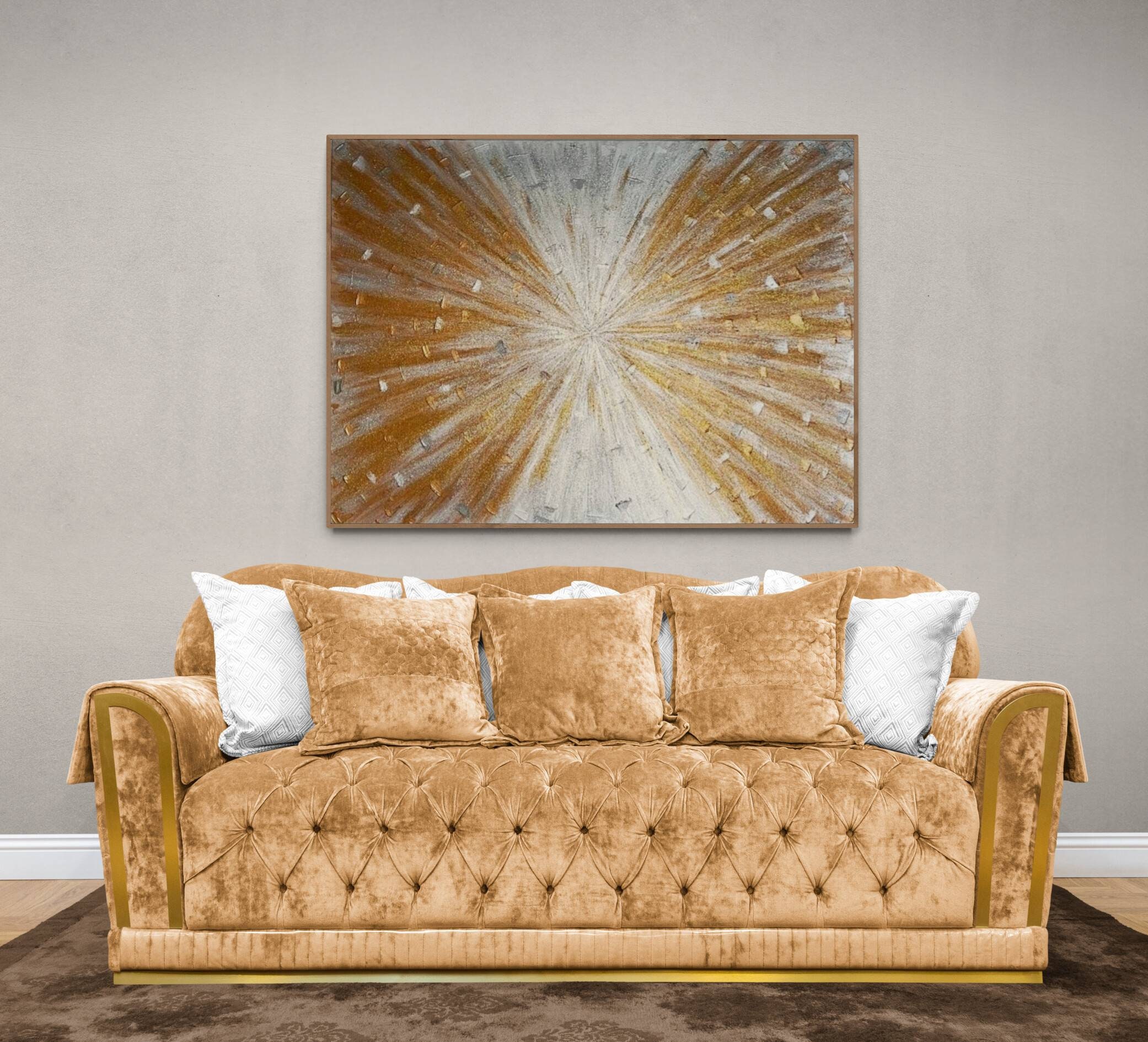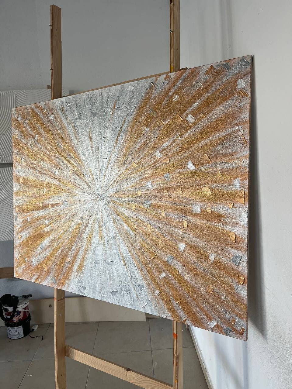 Large painting 46"×34" / 117 cm x 86 cm silver bronze shine original abstract, sparkle wall art, glitter painting, glam modern painting on canvas hallway art