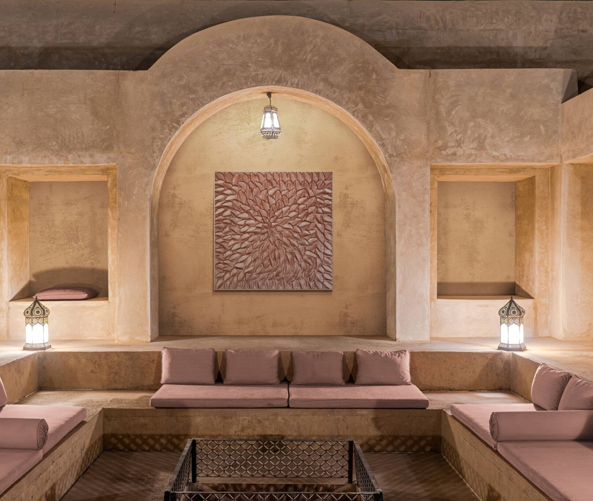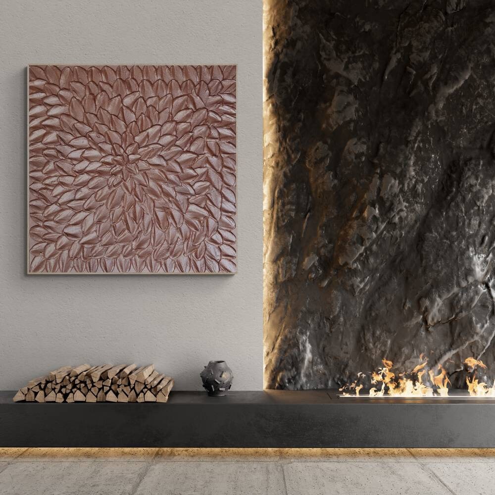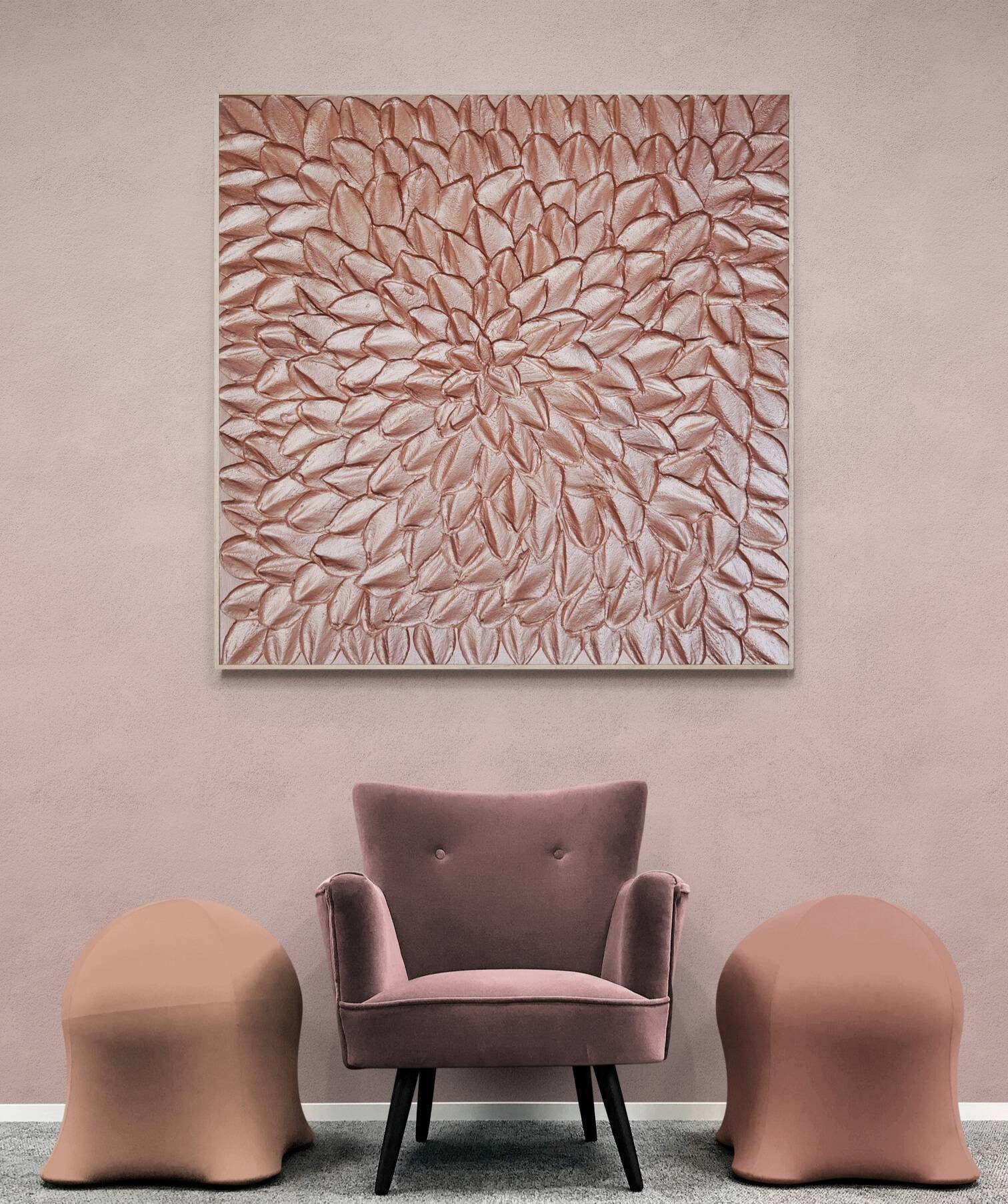 Oversized Rose Gold 3D Texture Painting: Blush Pink Metallic Wall Art Plaster Canvas