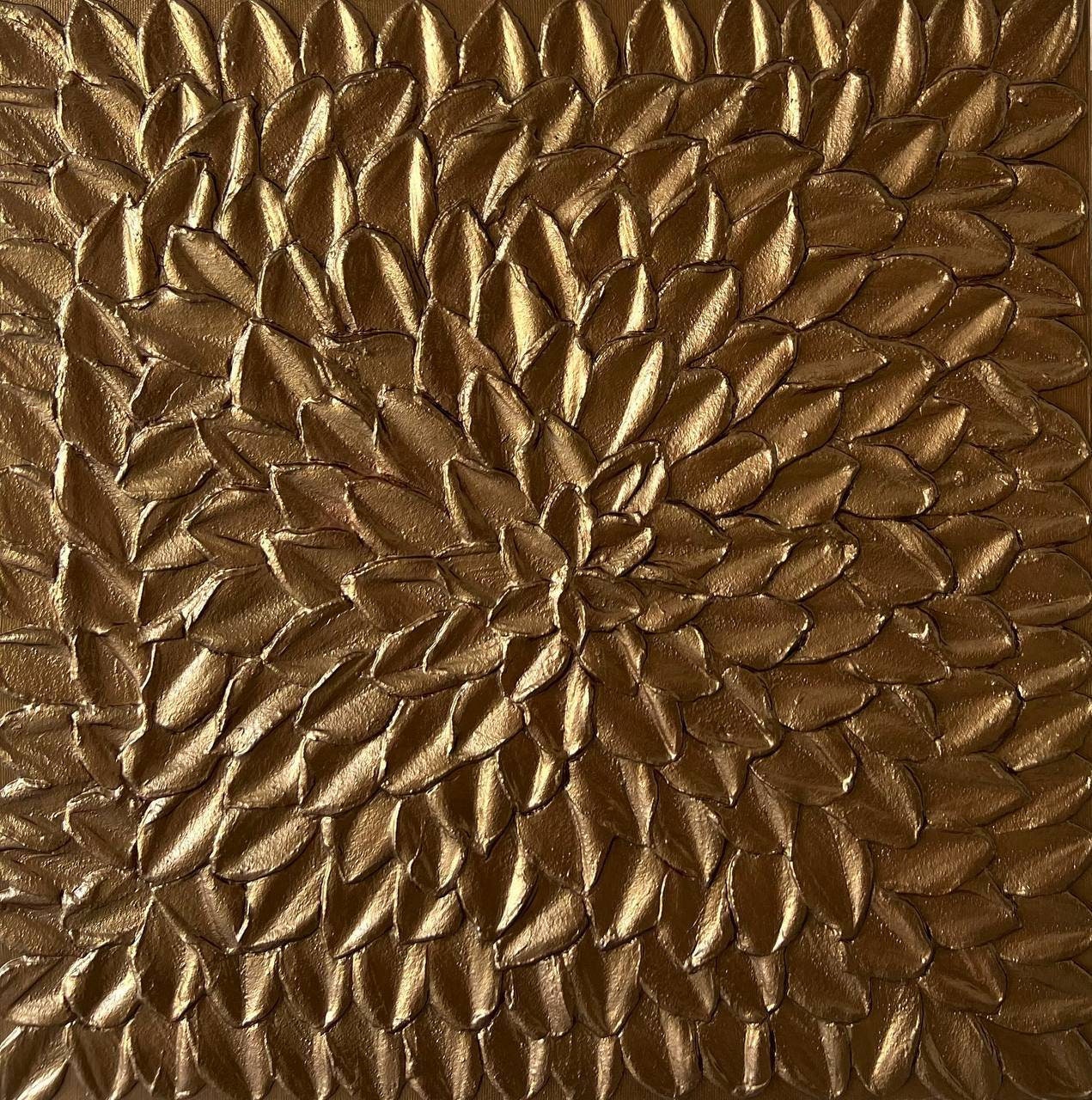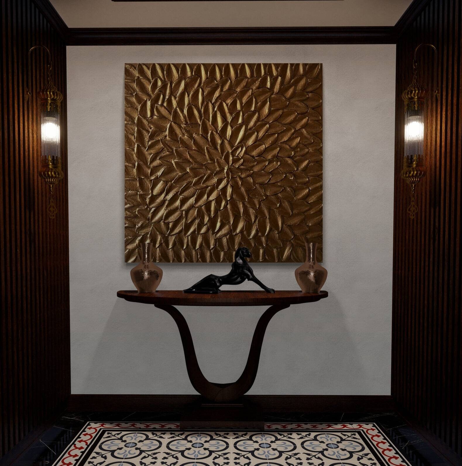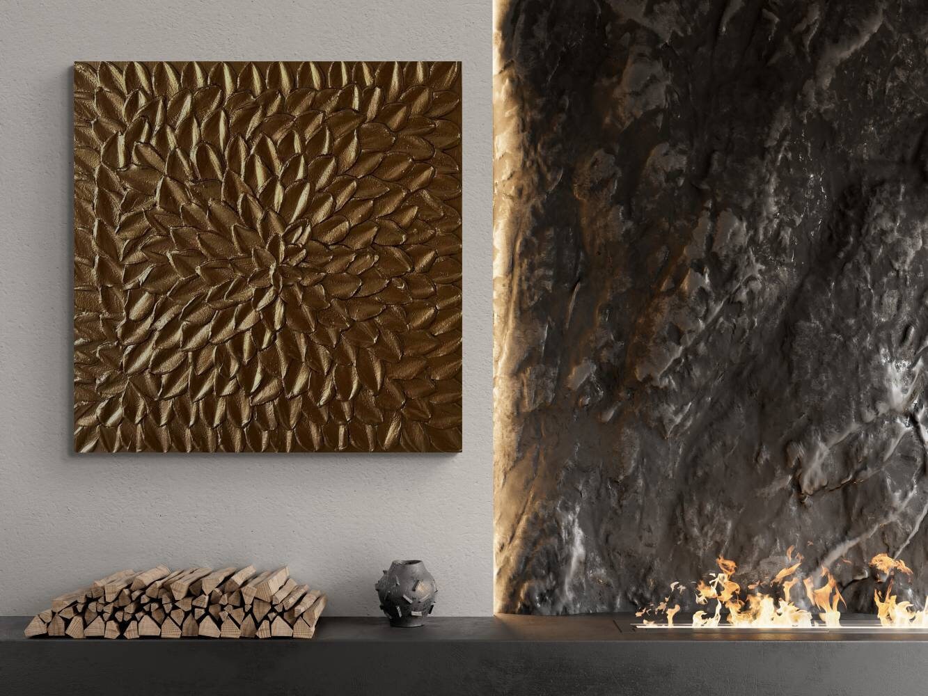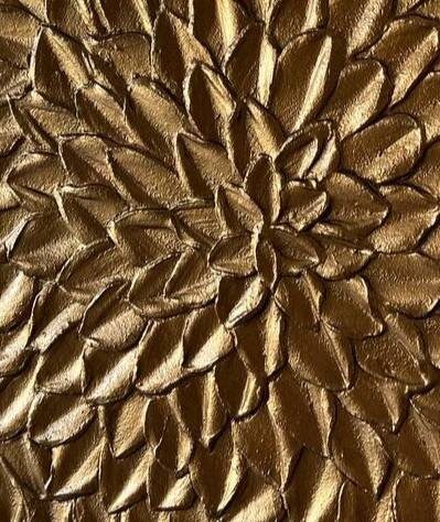 Oversized Bronze 3D Textured Painting: Modern Plaster Floral Wall Art