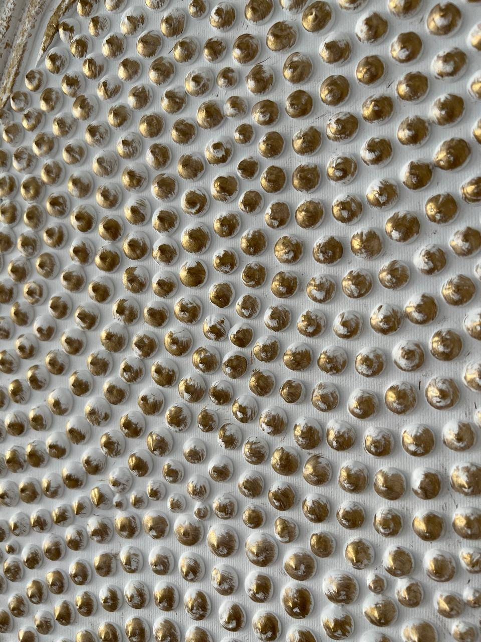 Large textured abstract wall art in white bronze colors, created with sculptural plaster and raised 3D dots.