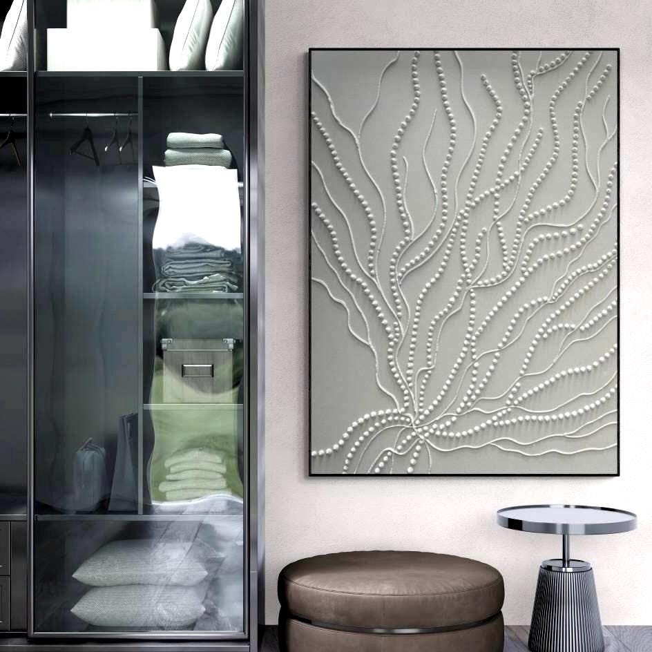 Large Textured Wall Art White Abstract Branch Painting 3d Dot Modern Original Handmade Canvas